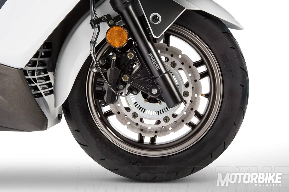 Cabe destacar que se ha tenido muy en cuenta nuestro mercado, no sólo como hemos dicho antes a la hora de diseñarlo, sino en cuanto a otros aspectos, como el tarado de las suspensiones o las estriberas escamoteables para el pasajero con goma incorporada, o los nuevos neumáticos Kenda de perfil dinámico para hacer más ágiles los cambios de dirección en el Gran Dink.