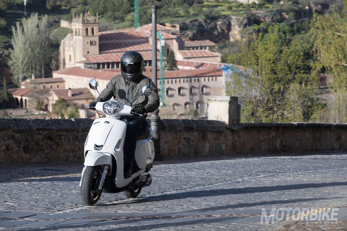 Entre las distintas localizaciones que se habían elegido para hacer las fotos y el vídeo, aproveché para comprobar sus cualidades entre el tráfico. El Like 125 responde perfectamente a las insinuaciones del acelerador y muestra una aceleración bastante aceptable para un modelo de esta cilindrada, lo que unido a su estrechez, te permite sortear los coches sin esfuerzo. Además, las continuas subidas y bajadas del centro de Segovia no supusieron ningún problema para este nuevo modelo.