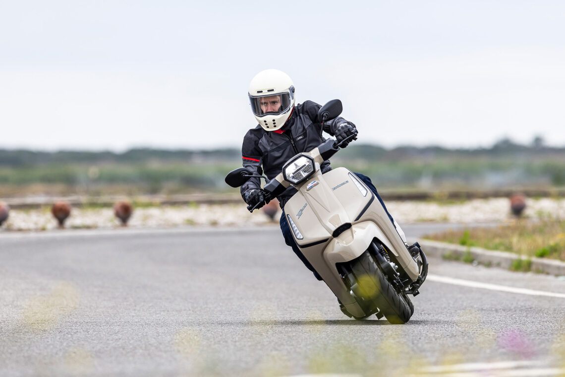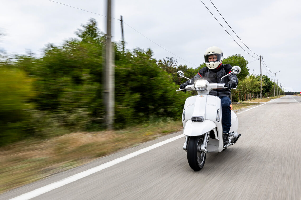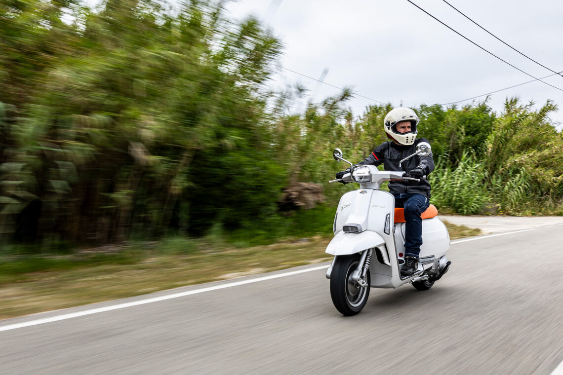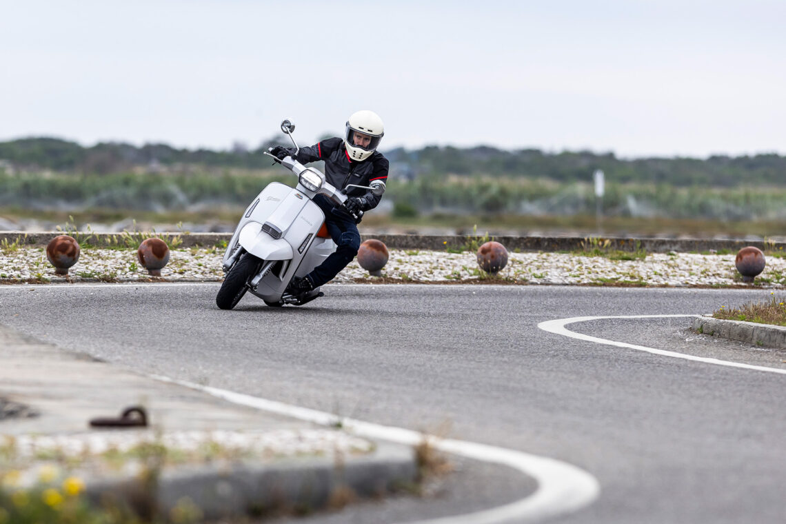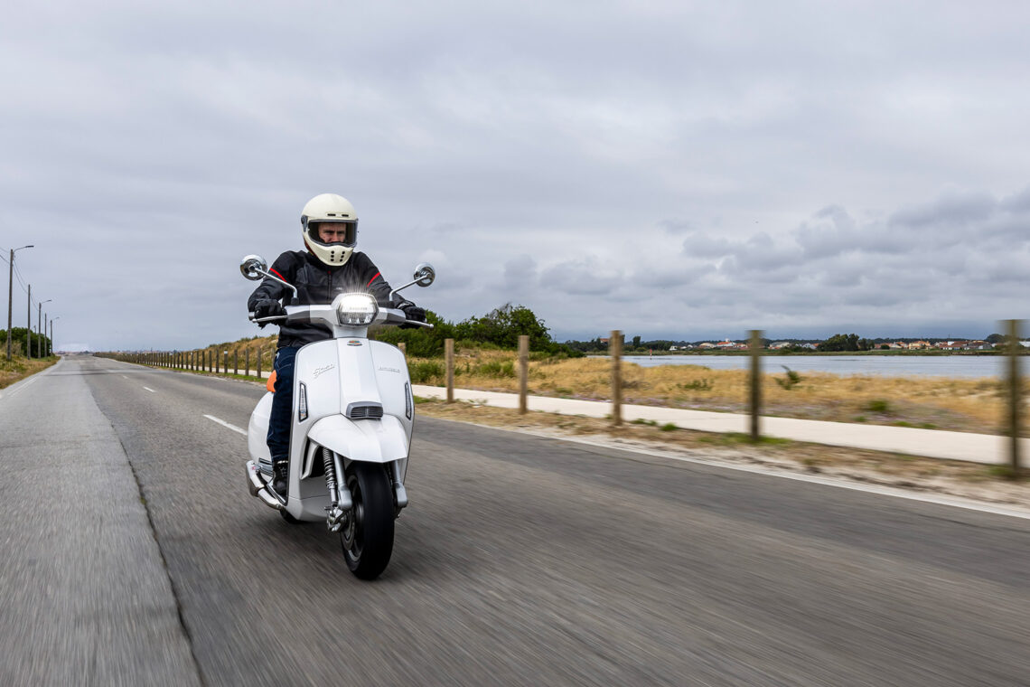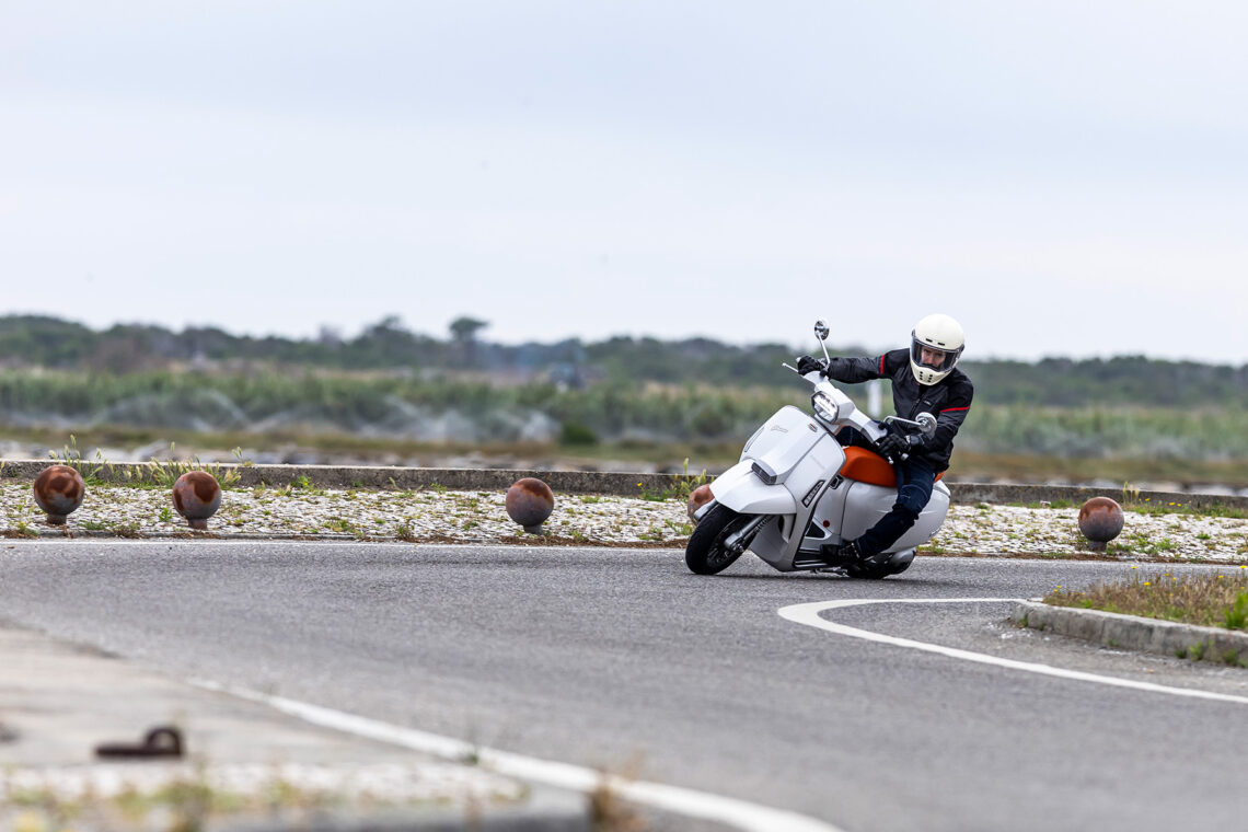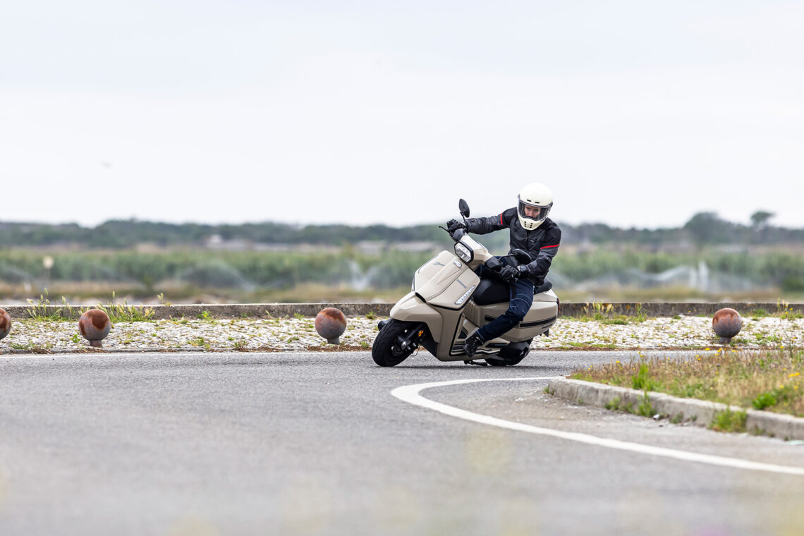 EL motor es suave y goza de un bonito ronroneo, no de acústica deportiva, pero sí lo suficientemente presente como para que la experiencia de uso empiece con un tono especial, con más personalidad que lo que sueles encontrar en el mercado. Los mandos son gruesos, algo que me chocó un poco, pero nada que supusiera un problema, y el tacto de los frenos un poco mecánico. Es un scooter fácil, pero el aura que le rodea es analógico y tradicional. Me gusta.