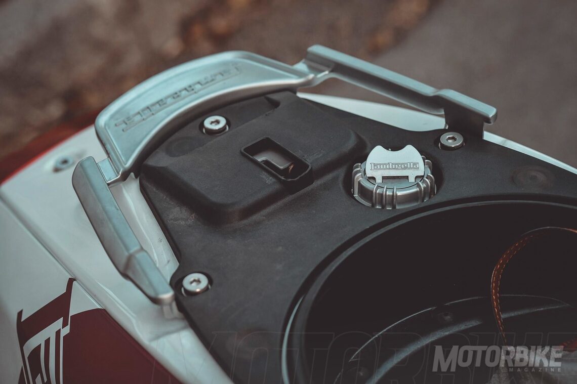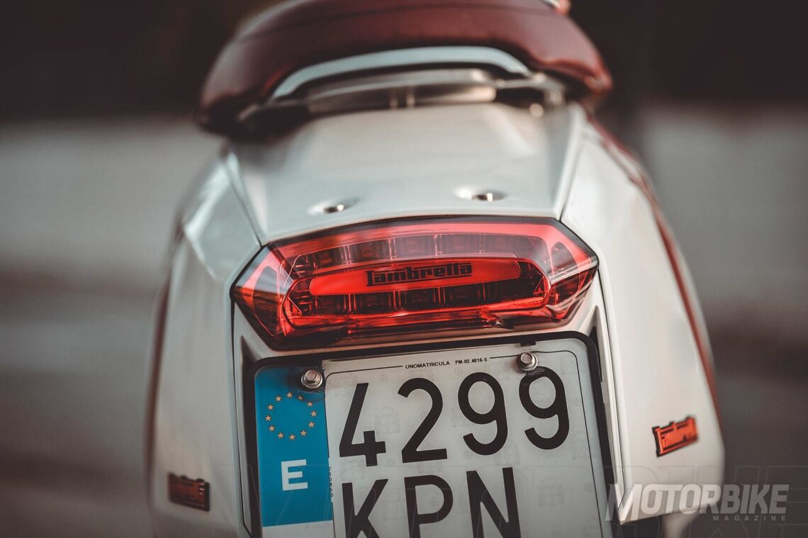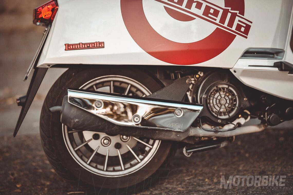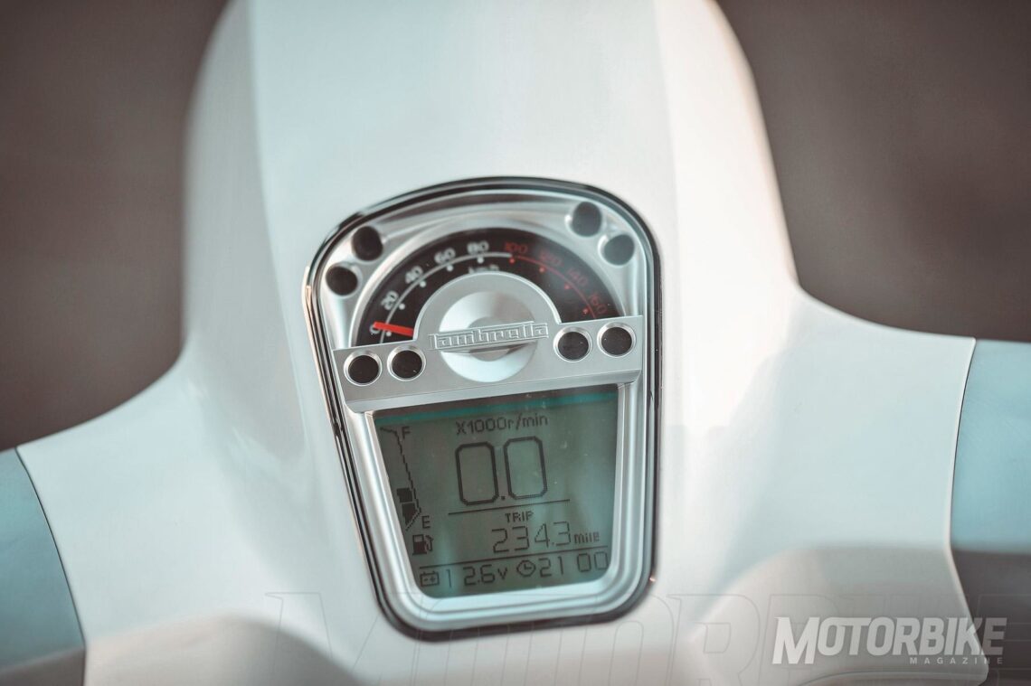 Esta scooter Lambretta V125 Special cuenta con la posibilidad de llevar el guardabarros delantero flexible (Flex Fender) o las míticas de tipo fijo (Fix Fender), como el de la unidad de nuestra prueba. La instrumentación es un pequeño cuadro dual con velocímetro analógico y una pequeña pantalla LCD con información de rpm, parciales, consumo, indicador de gasolina, etc.