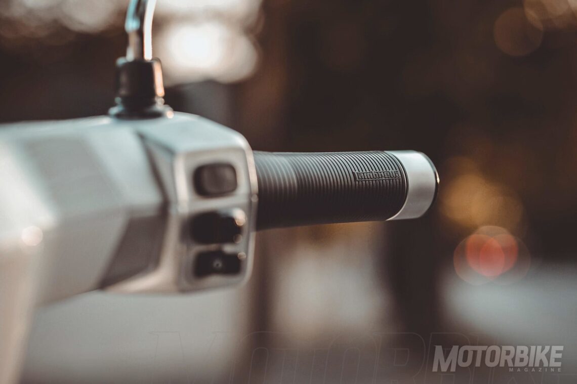 El asiento es bastante amplio, con espacio de sobra para un pasajero y sin irregularidades ni doble altura. Está bordado con un nivel de detallado y acabado muy alto, y lo cierto es que resulta bastante cómodo. El tacto de los frenos es algo esponjoso, pero la mordiente es buena, incluso cuando frenamos con el trasero únicamente, su disco de freno trasero se nota.