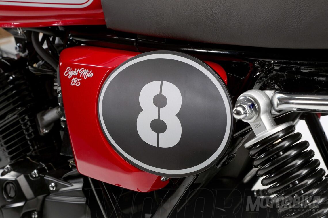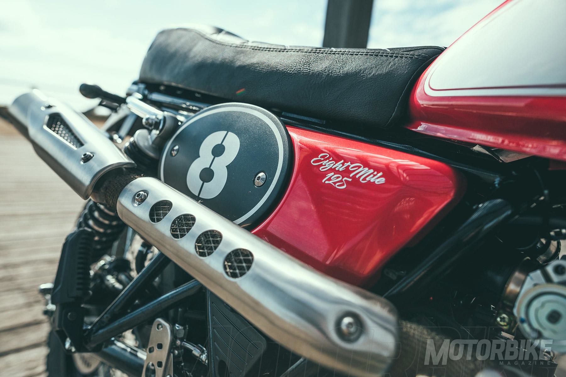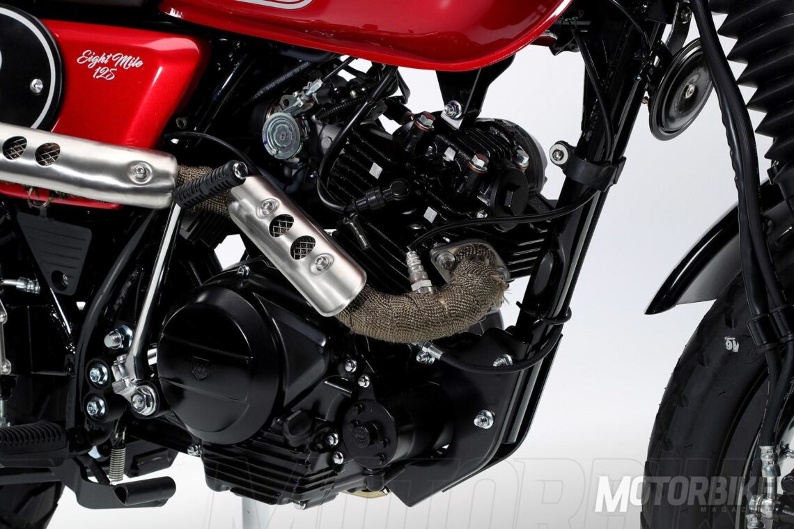 La Macbor Eight Mile 125, de base exactamente igual a sus hermanas Johnny Be Good y Lord Martin, cuenta con un interesante motor 125 de estructura 'YBR'. Este monocilíndrico de inyección refrigerado por aire se convierte en el corazón y una de las piezas fundamentales de este modelo como veremos más adelante. No sobrepasa los 10 cv de potencia (ni falta que le hace) y rinde un par máximo de 9,5 Nm.