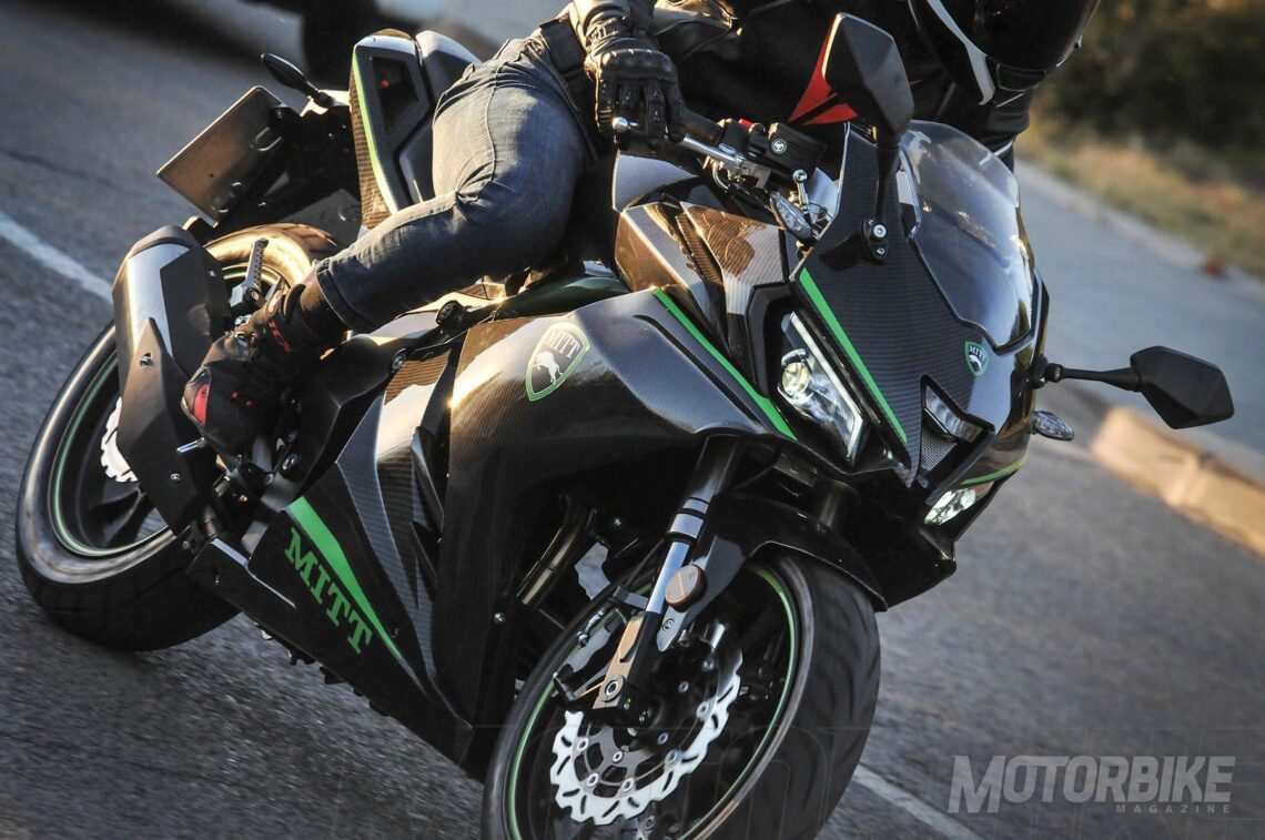 La Mitt 125 GP llega al mercado con un diseño agresivo y muy llamativo. El carenado en imitación de carbono con los detalles en verde (incluido el chasis multitubular) llama mucho la atención. A pesar de ser una moto de 125, la distancia entre ejes y su tamaño hace que aparente una moto de mayor cilindrada.