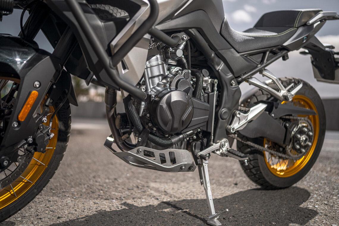 Vamos con su motor. Aunque se llame 555, su motor es un bicilíndrico en paralelo de 471 cc que da 47 CV a 8.500 rpm y 44,5 Nm de par a 7.000 rpm. Es decir, entre las más potentes de su cilindrada-categoría. Eso sí, esta trail A2 no tiene ninguna ayuda electrónica a la conducción.