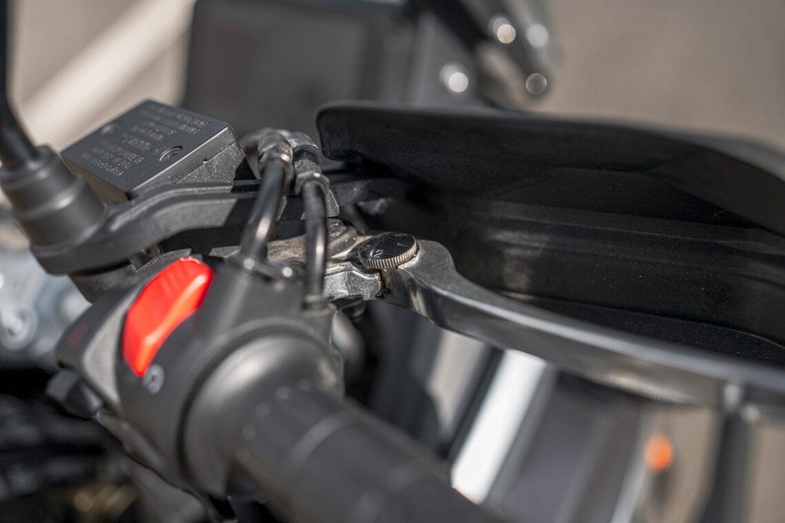 Siguiendo con las comodidades de esta moto, hay que destacar que la pantalla no es regulable en marcha y está relativamente lejos. No presenta una protección aerodinámica superior, pero tiene un buen compromiso entre visibilidad y protección. Eso sí, se puede regular con herramientas para configurarla en la posición que se desee (aproximadamente ± 5 cm).