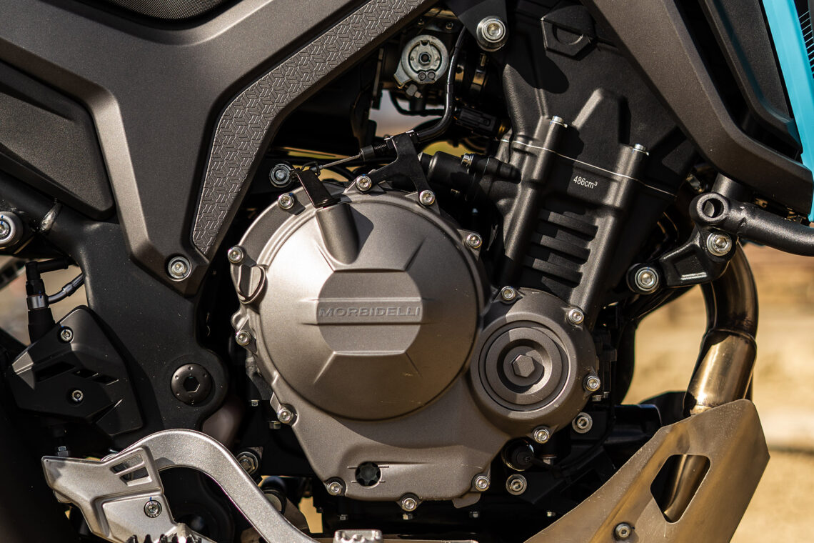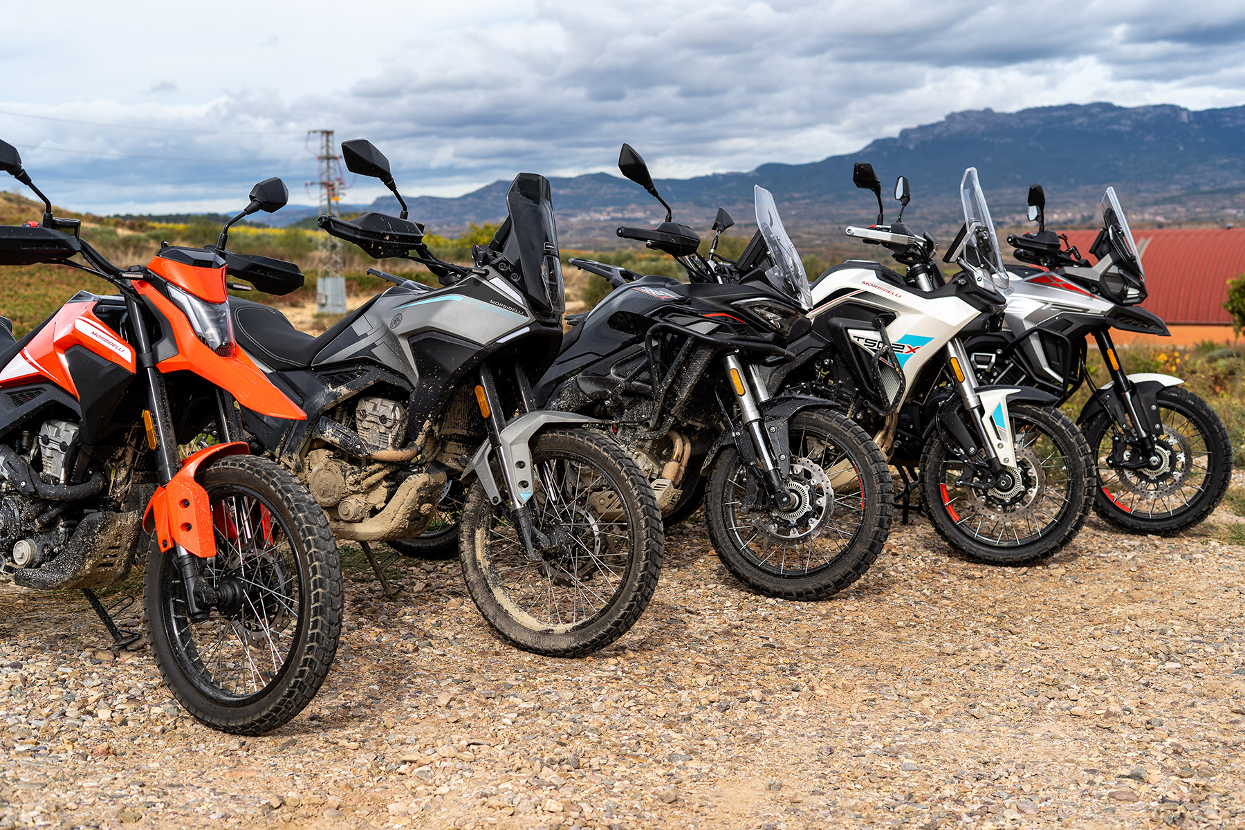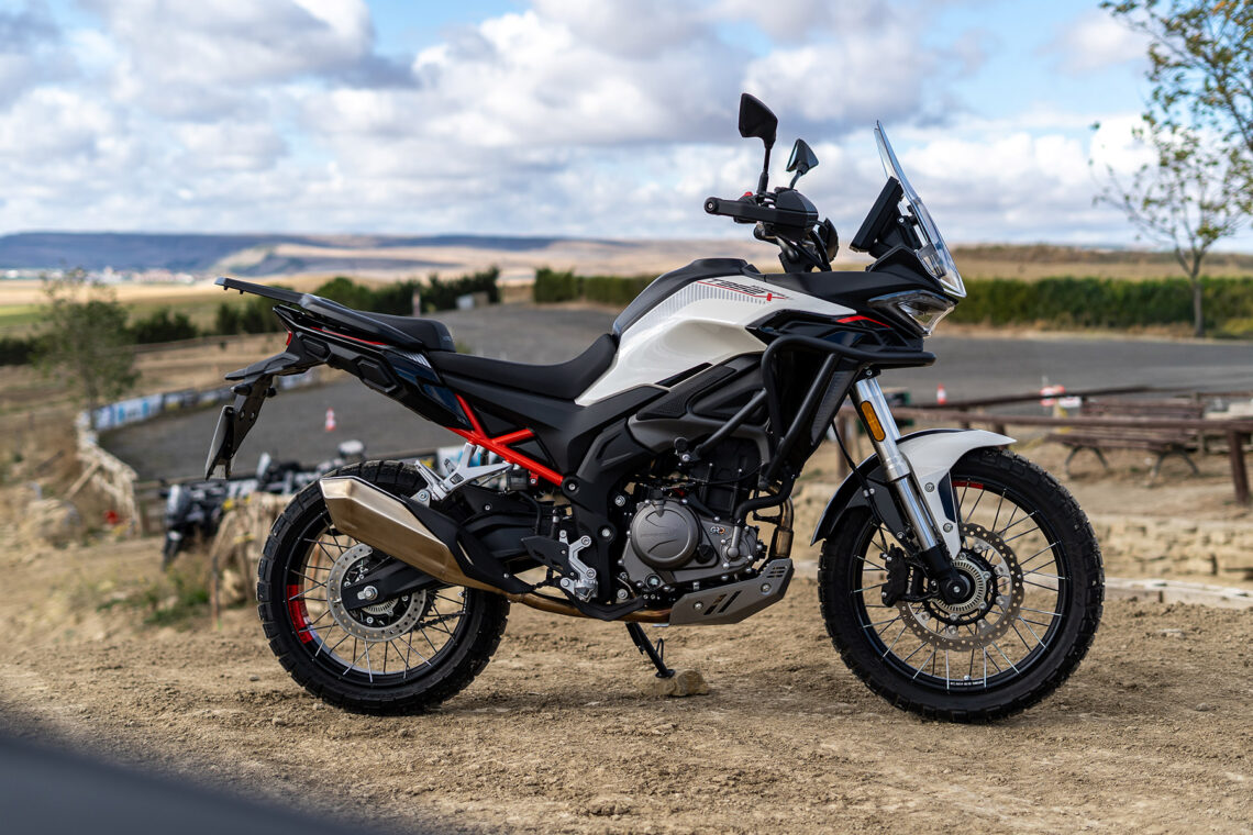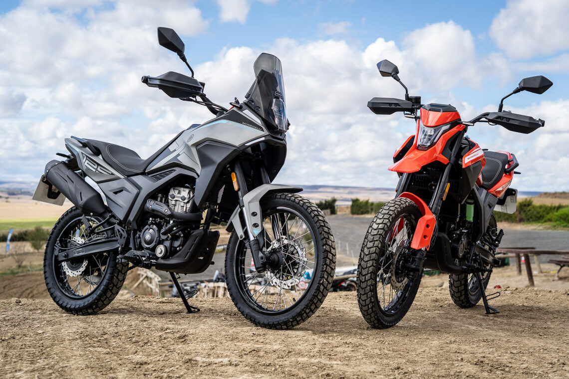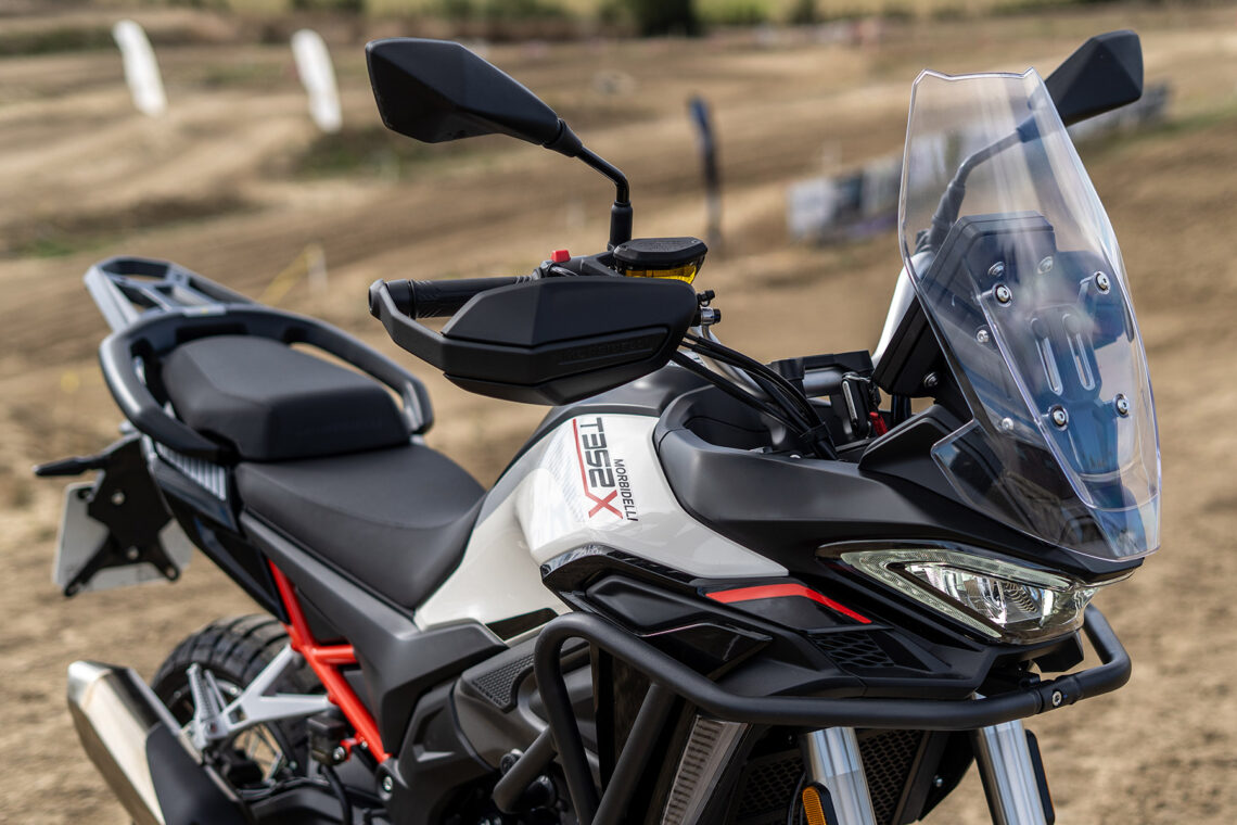 El siguiente escalón arranca con la Morbidelli T352X. Ojo, porque nos encontramos con un motor de casi 350 cc, pero con una configuración de dos cilindros en línea que eleva sus ambiciones al llegar a nada menos que casi 41 cv de potencia, acercándose sorprendentemente al límite del carnet A2. Encontramos una orientación parecida, con suspensiones muy capaces (también horquilla invertida de 41 mm con 160 mm de recorrido y monoamoriguador trasero de 56 mm con ajuste de precarga). Combina ruedas de 19" delante y 17" detrás, con llantas de radios y detalles de calidad como los neumáticos Pirelli Scorpion Rally STR tubeless en este caso de mayor ancho. El disco delantero pasa a ser un componente flotante de 300 mm con pinza de 4 pistones con disco trasero de 240 mm.