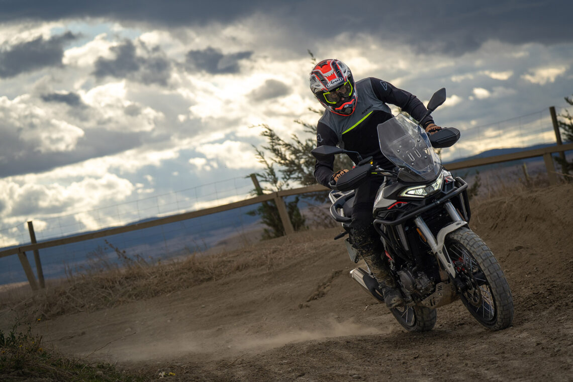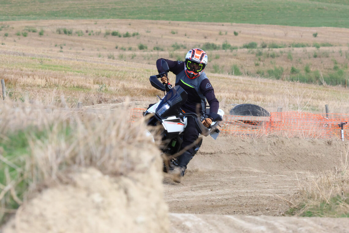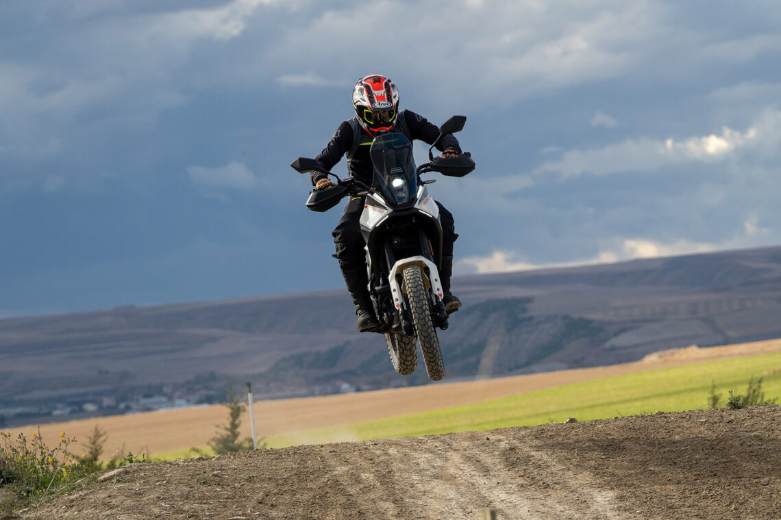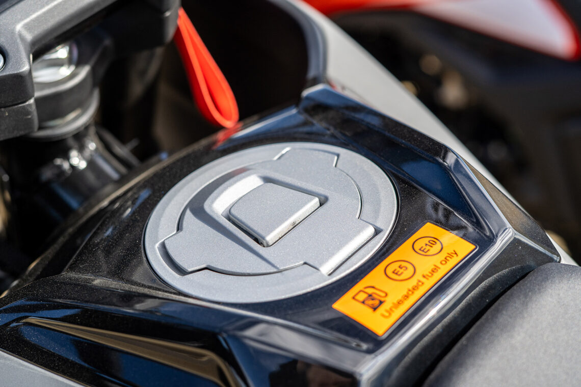 Su ergonomía está más enfocada al on-road, con una mayor carga hacia el tren delantero y mayor aplomo que la hace más eficaz sobre el asfalto y cuando vas sentado. Es cierto que al ponernos de pie esto juega un poco en contra. Los 20 litros de capacidad también permiten tener unas autonomías más elevadas mientras que el comportamiento de la parte ciclo es muy positivas y según lo que puedes esperar.