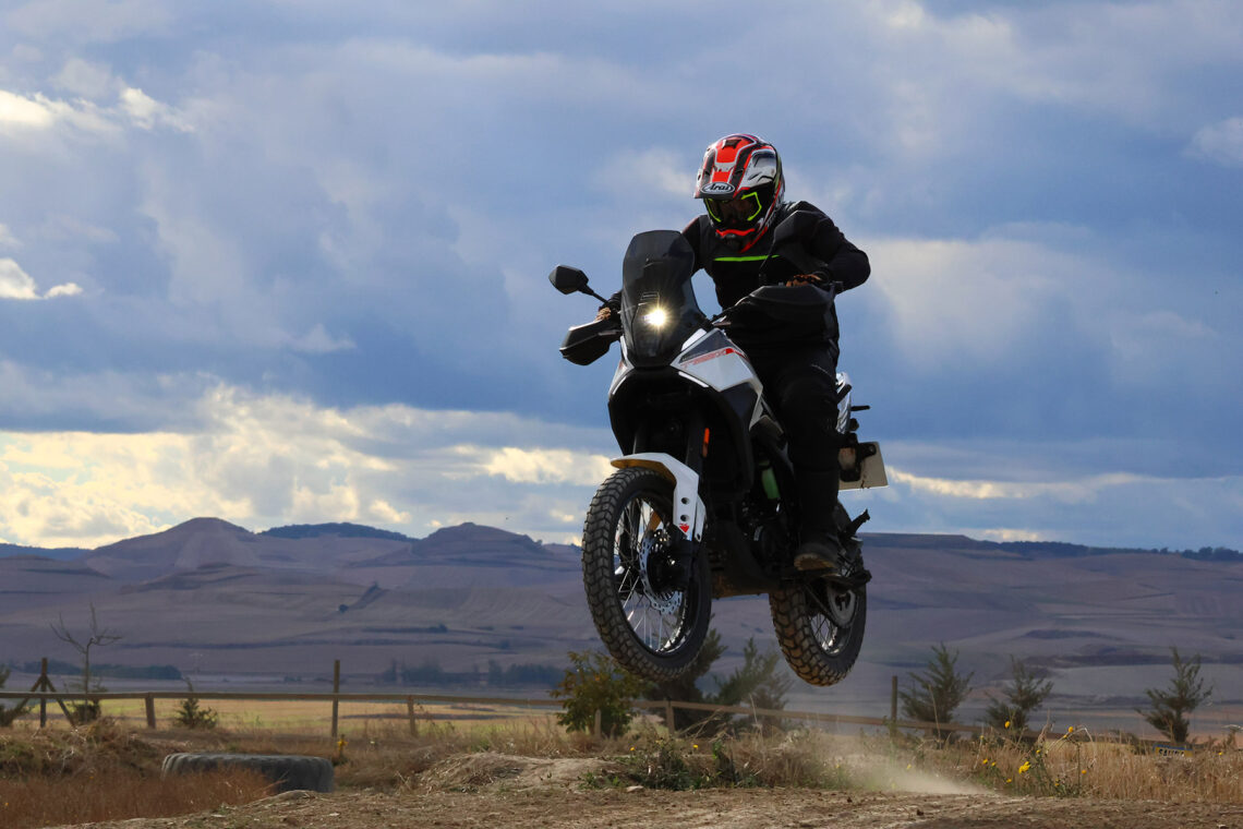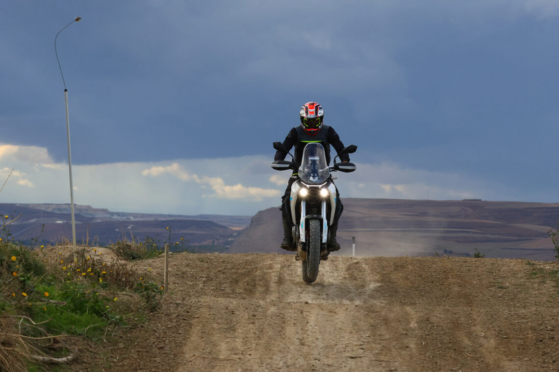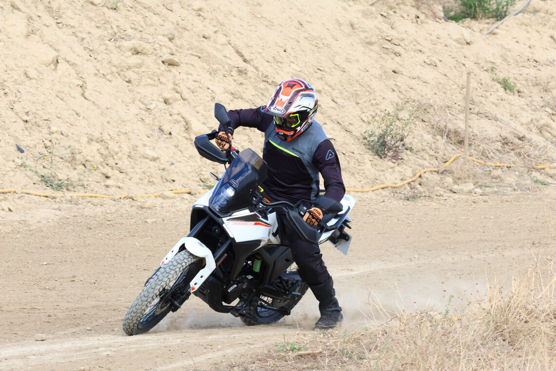 En esta ocasión, la marca de origen italiano nos lleva a La Rioja, en concreto al Park Motor MTR, un lugar fantástico rodeado de circuitos para los amantes del off-road. Ahí es donde hemos podido disfrutar bien a gusto de la nueva línea trail casi al completo. La firma, relanzada el curso pasado por el grupo KEEWAY, se presentó con algunas propuestas dando un golpe sobre la mesa. La primera fue la Morbidelli T1002VX, que servía de punta de lanza para proponer una moto de estilo maxi-trail, muy bien equipada y unas condiciones viajeras muy sorprendentes, a lo que hay que añadir un precio de absoluto escándalo bailando en la franja de los 10.000 euros. Este modelo estuvo presente aunque no la montamos. Si queréis saber cómo va, podéis ver la prueba que hizo mi compañero Javi hace unos meses.