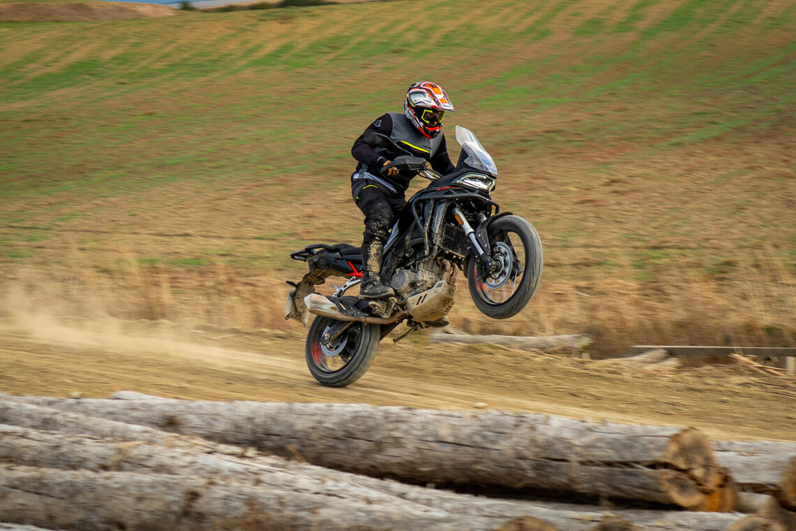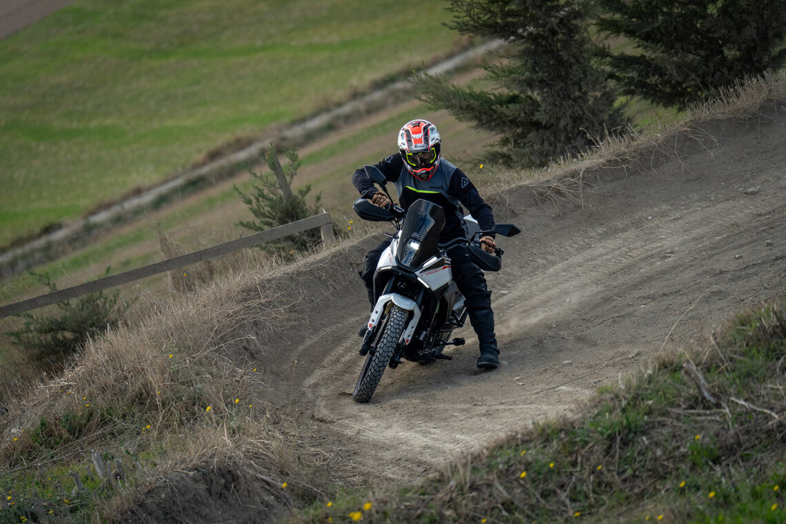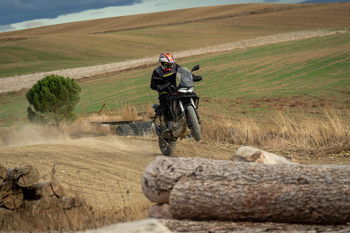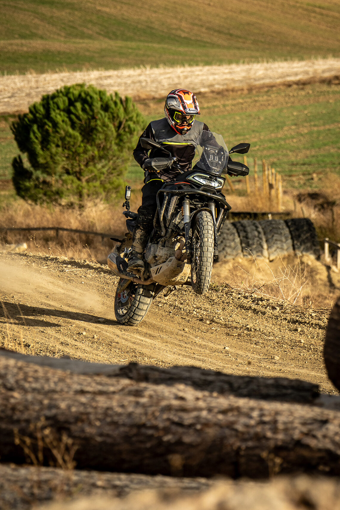 En esta ocasión, la marca de origen italiano nos lleva a La Rioja, en concreto al Park Motor MTR, un lugar fantástico rodeado de circuitos para los amantes del off-road. Ahí es donde hemos podido disfrutar bien a gusto de la nueva línea trail casi al completo. La firma, relanzada el curso pasado por el grupo KEEWAY, se presentó con algunas propuestas dando un golpe sobre la mesa. La primera fue la Morbidelli T1002VX, que servía de punta de lanza para proponer una moto de estilo maxi-trail, muy bien equipada y unas condiciones viajeras muy sorprendentes, a lo que hay que añadir un precio de absoluto escándalo bailando en la franja de los 10.000 euros. Este modelo estuvo presente aunque no la montamos. Si queréis saber cómo va, podéis ver la prueba que hizo mi compañero Javi hace unos meses.
