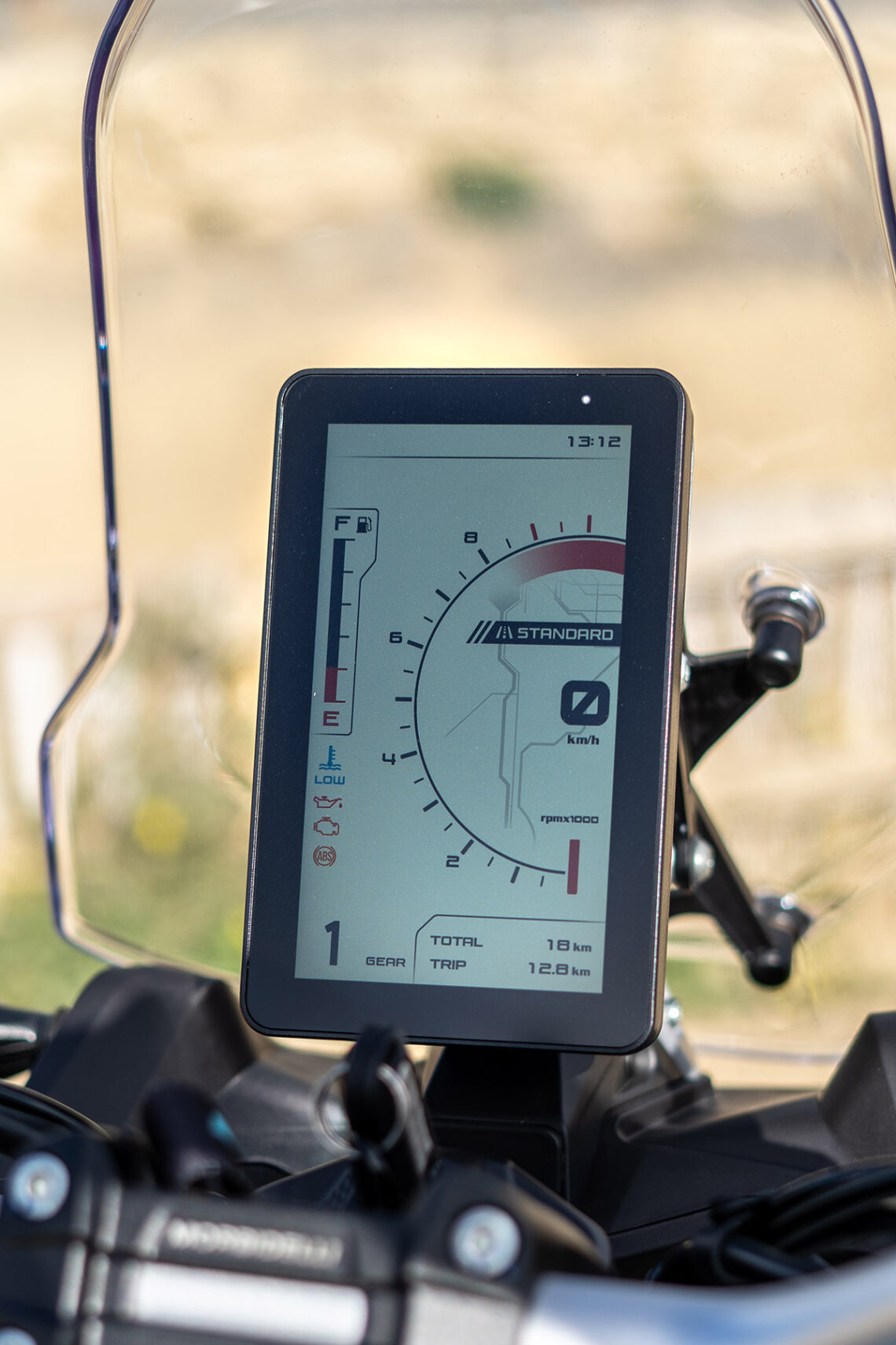 En este modelo se incorpora cierta electrónica, con modos de conducción que ayudan a gestionar la intrusión del ABS y del control de tracción, es decir, en el modo Off-road, se desactiva el control de tracción y el ABS trasero además de rebajar su actuación en el tren delantero. Además del modo Standard, también está el modo Sport. La conmutación de estos modos de conducción la tenemos que hacer en parado. Ojalá en la siguiente evolución se pueda hacer durante la marcha...