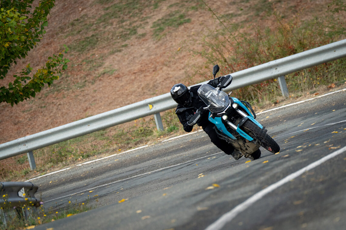 Antes de entrar de lleno en su comportamiento dinámico, sí me gustaría destacar que la Morbidelli T125X está dirigida a alguien que quiere una moto 125 versátil. Estamos ante una moto muy cómoda, con manillar ancho y fácil de llevar. Su motor es dócil y no se te va a apoderar, por lo que además rápidamente se convierte en una moto-escuela magnífica para los que quieran iniciarse en la conducción por caminos a la vez que sientes la diversión.