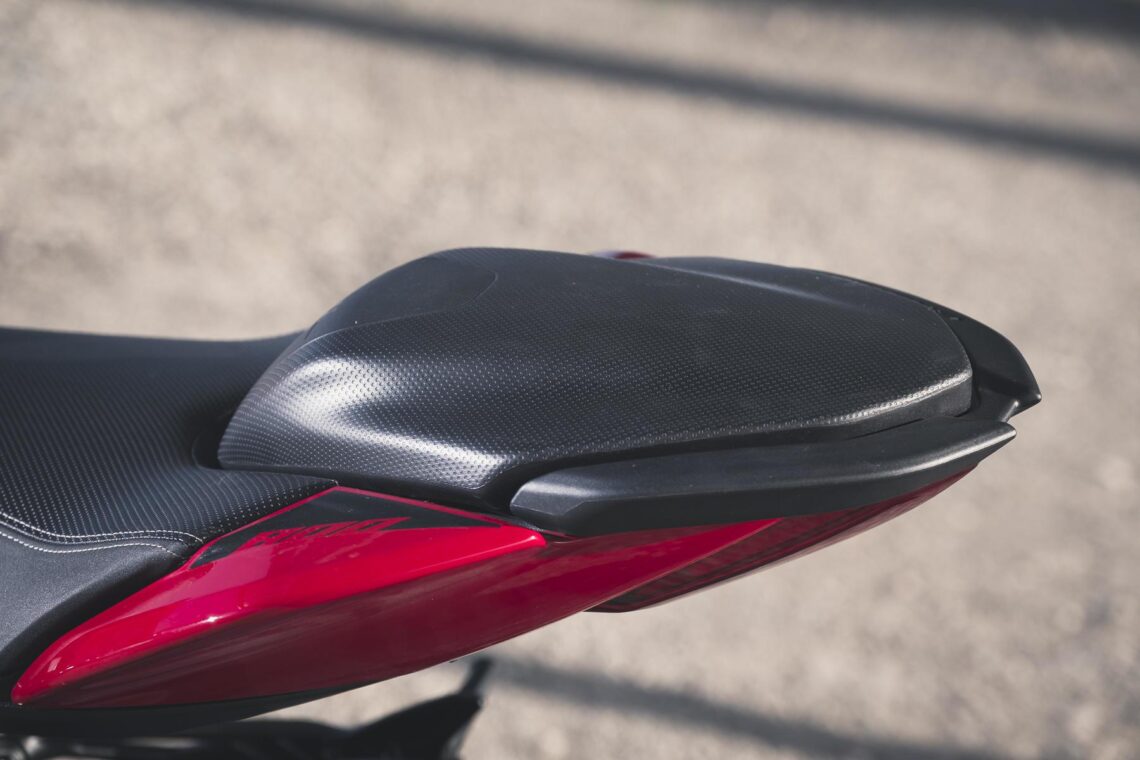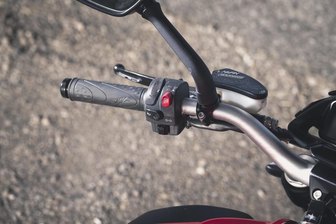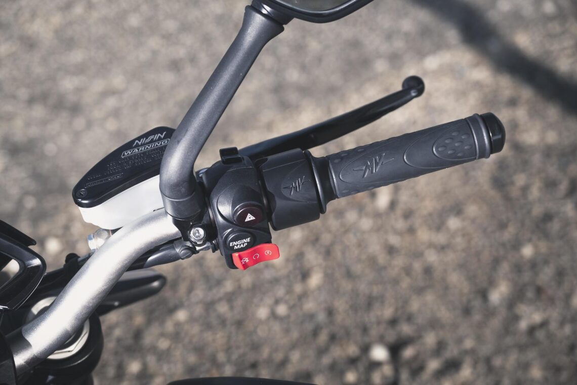 El manejo es propio de una moto más ligera, las suspensiones se muestran algo secas con el tarado de serie (recomendamos ajustar el hidráulico un poco), y el chasis también es una declaración de intenciones: no le gustan las curvas lentas ni mal asfaltadas. Mientras, si el asfalto es bueno y la curva tiene un radio más amplio y generoso, la única diferencia que vas a percibir respecto una deportiva es el aire que te pega en el pecho.