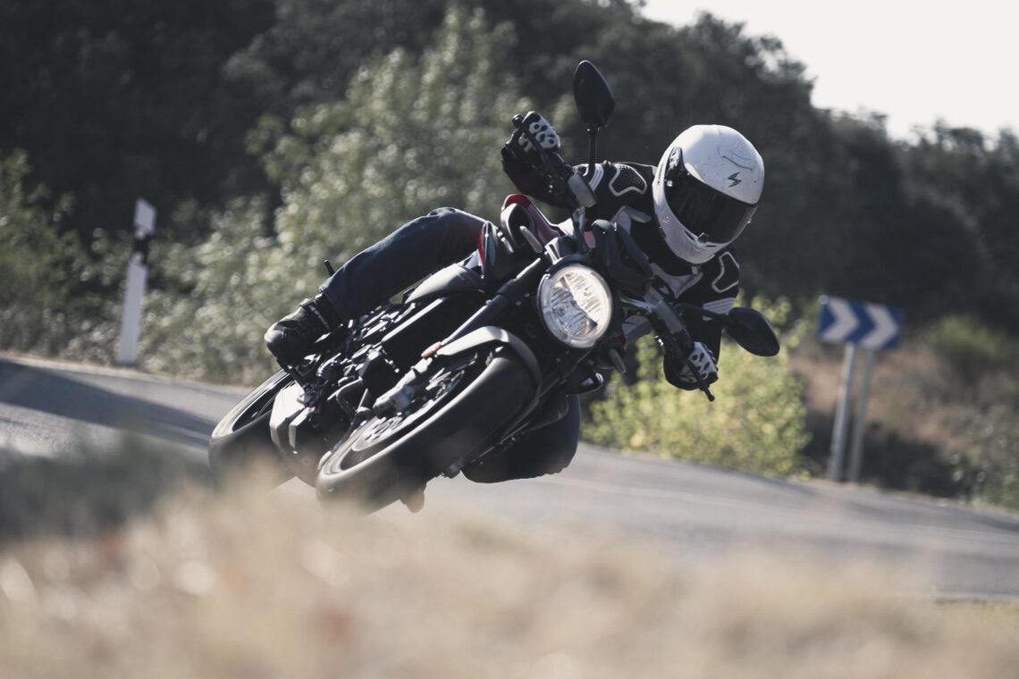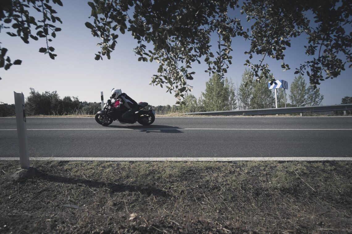 En los apoyos inclinados podrás notar cada "aguja" de pino seca que haya en la carretera, con lo bueno y lo malo que tiene. Es una moto que transmite mucha información, te dice cómo es el asfalto a cada metro, como agarra y como están funcionando los neumáticos.