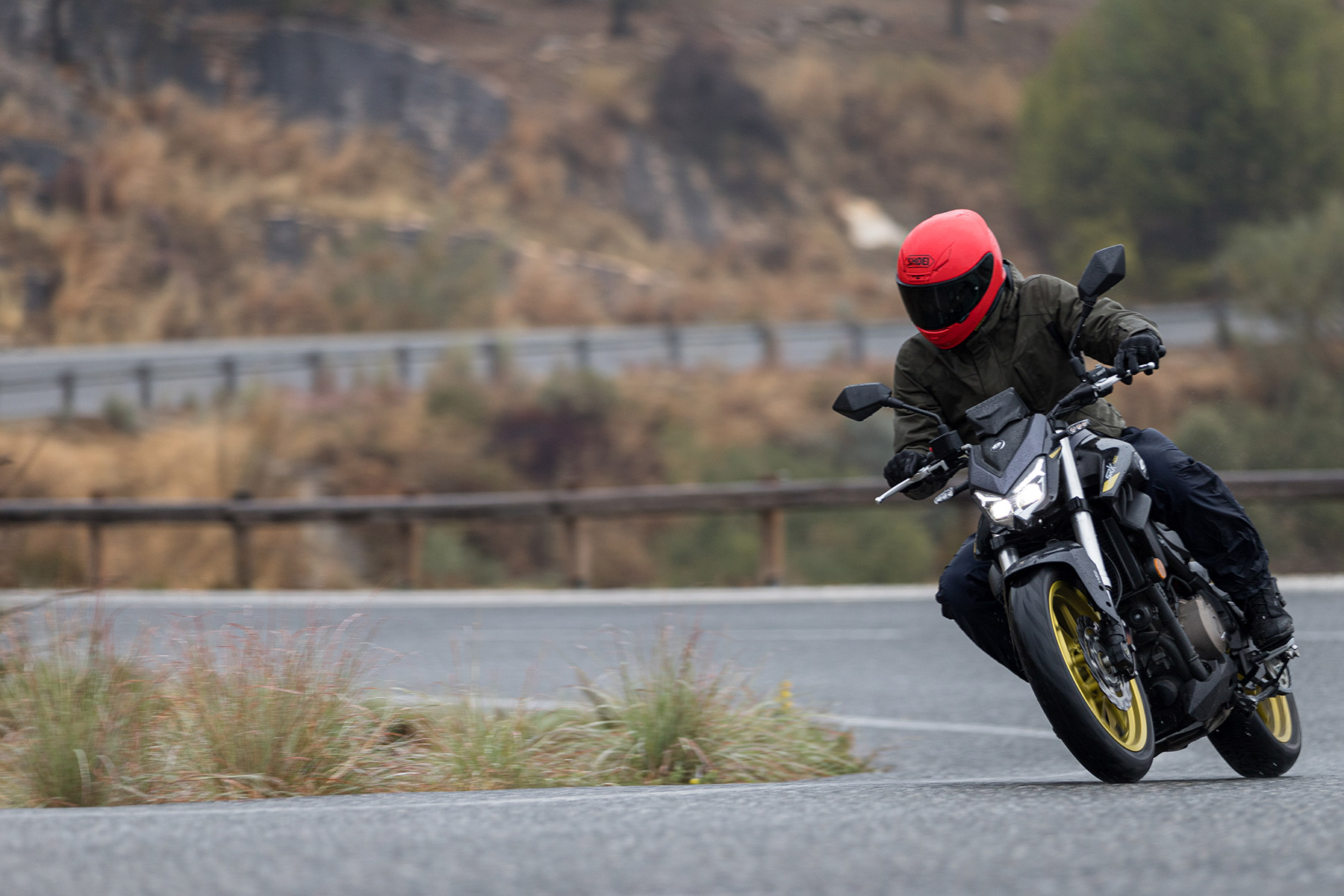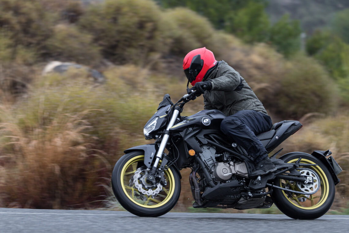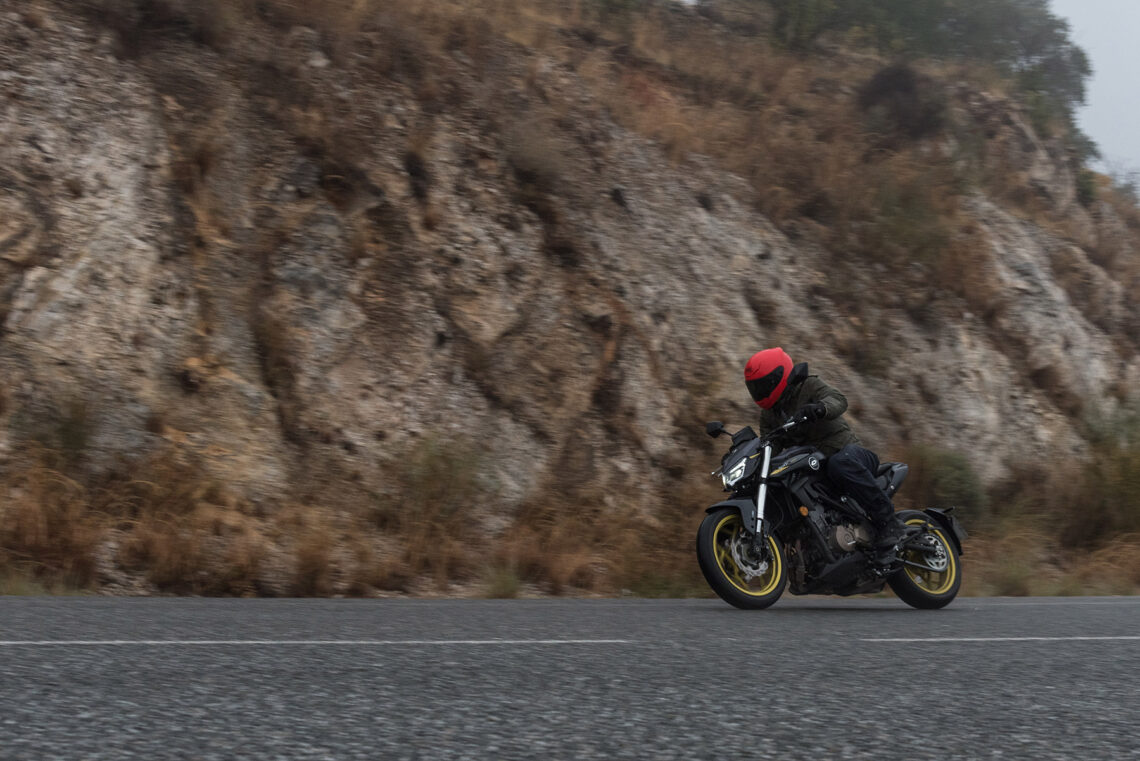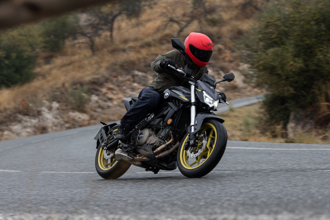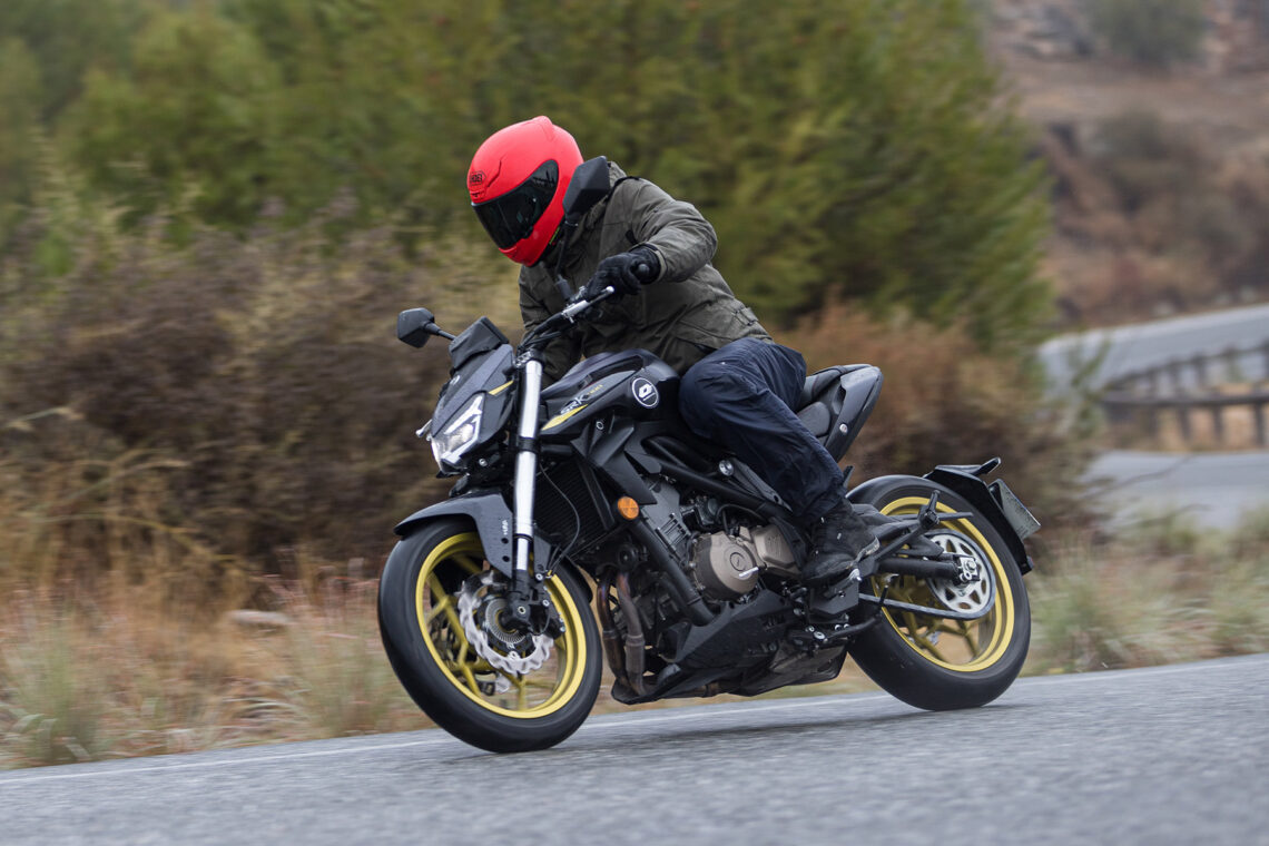 En esta primera toma de contacto con la QJ SRK 400 no hemos tenido toda la suerte que nos hubiera gustado, y es que como ya hemos comentado en esta presentación nos ha llovido de lo lindo. Y si a ese agua le sumamos algunas carreteras de asfalto bastante pulido, entonces la cosa se complica aún más. Sin embargo, y aunque fuera bajo la lluvia, sí hemos podido probar esta nueva naked A2 durante los kilómetros suficientes como para poder elaborar una primera impresión sobre ella. Los elementos no lo han puesto fácil, ni a la moto ni a nosotros, y hemos de decir que incluso así el aprobado ha sido con nota, con algunos detalles en los que siempre hay margen de mejora, claro.