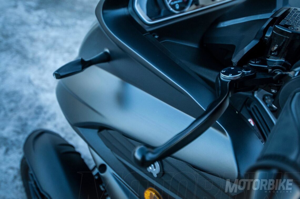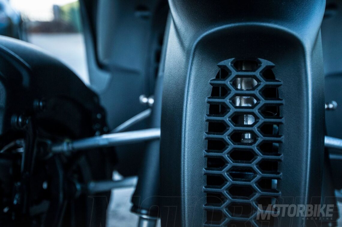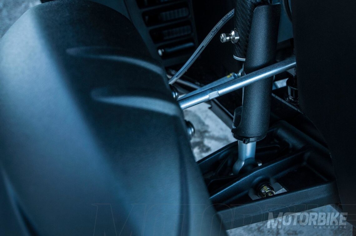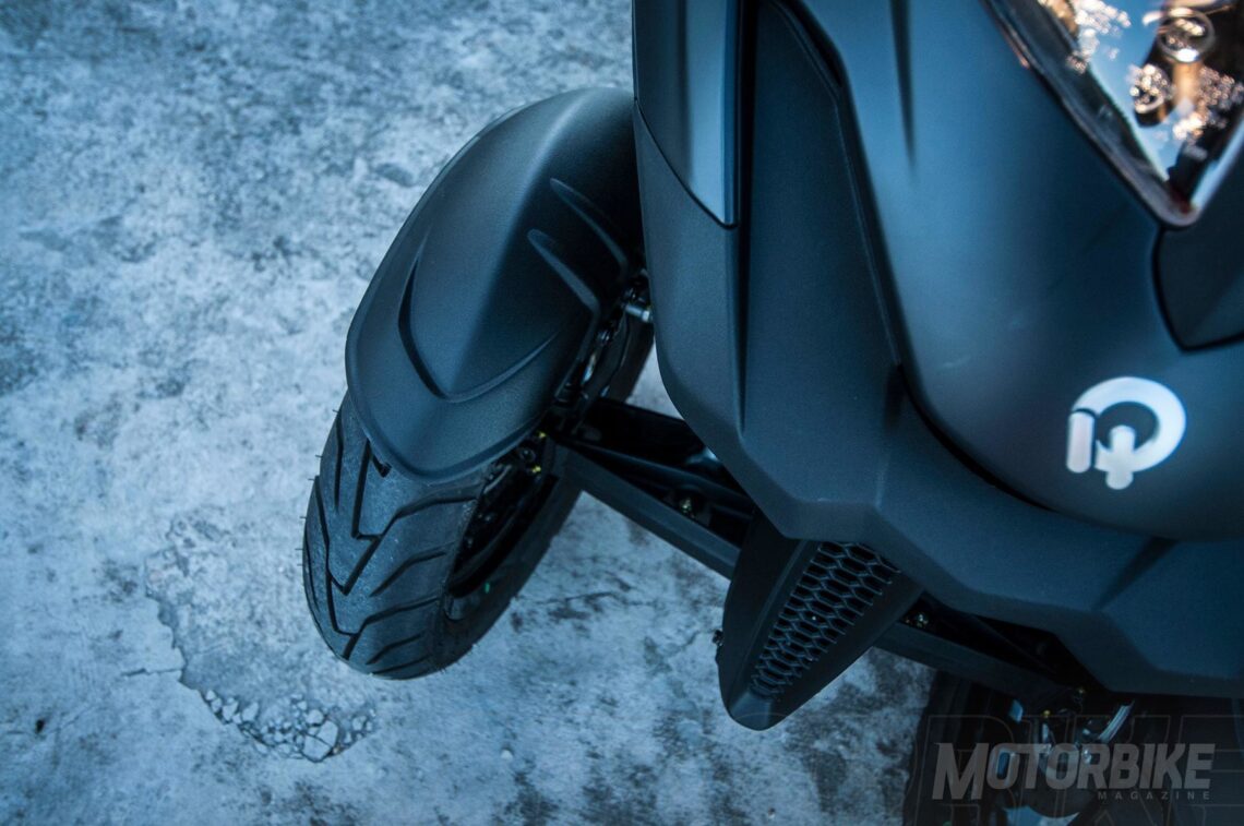 Todo este despliegue hidraulicomecánico permite un ángulo de inclinación de hasta 45 grados con una estabilidad inalterable y una precisión en el paso por curva difíciles de encontrar en el segmento de los scooters de 3 ruedas.