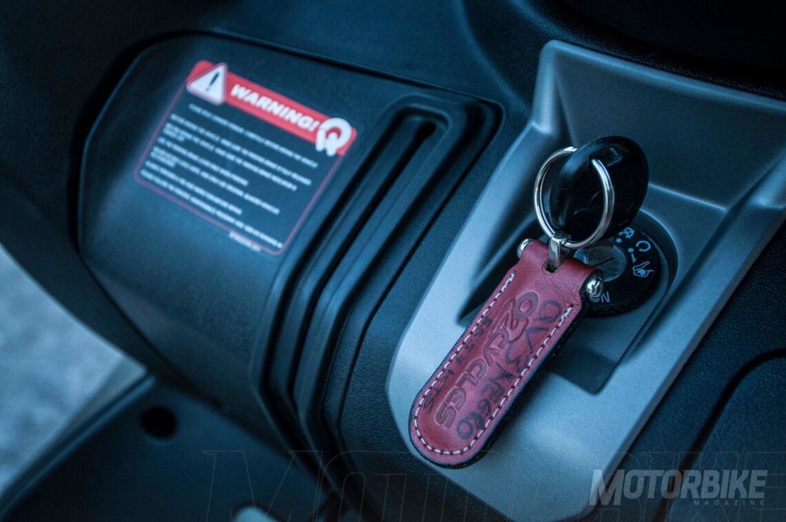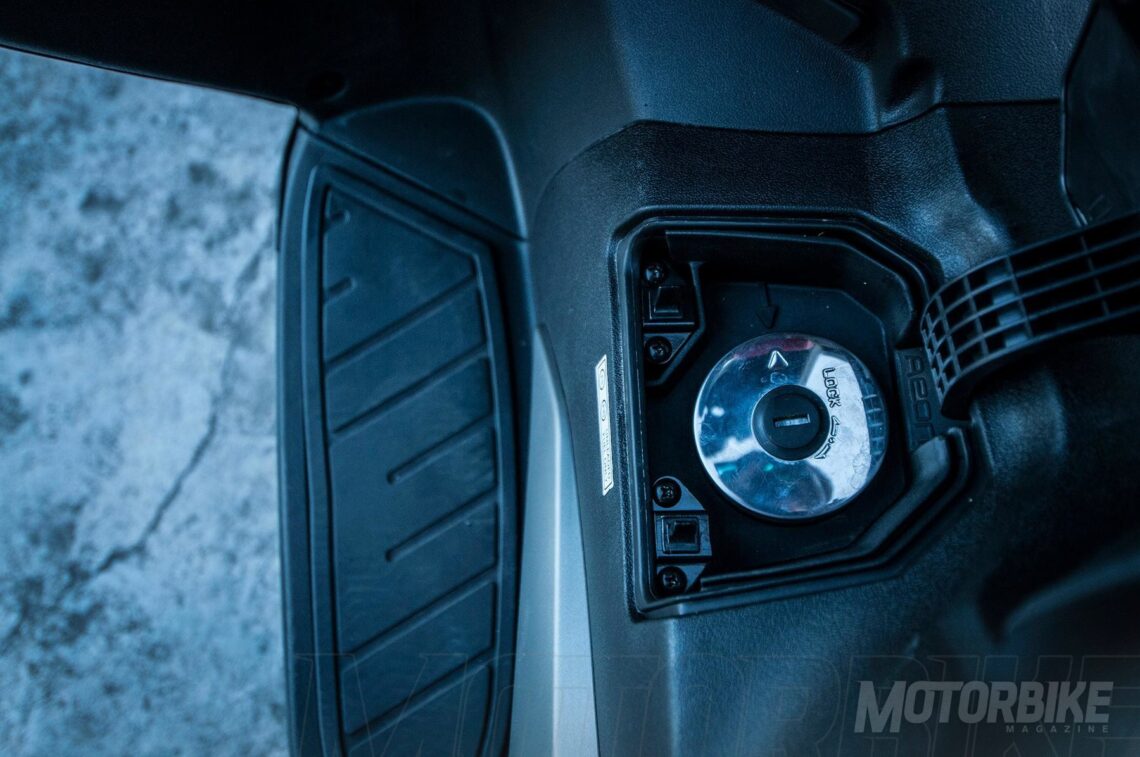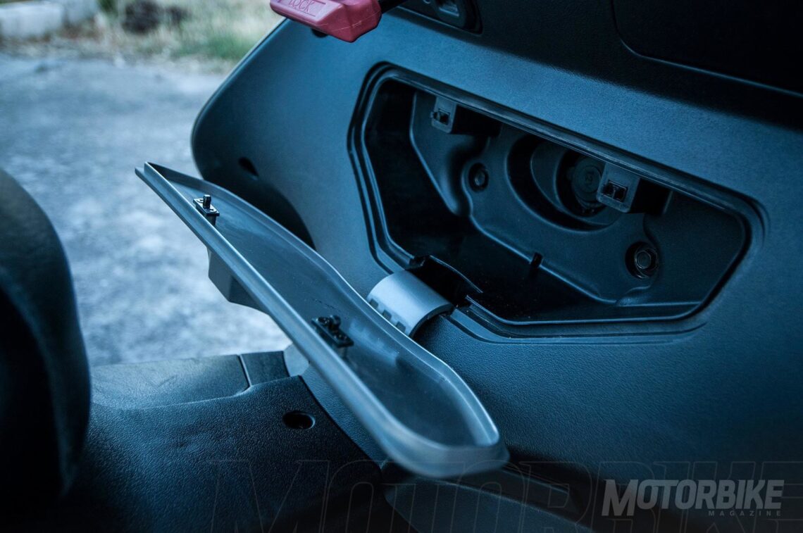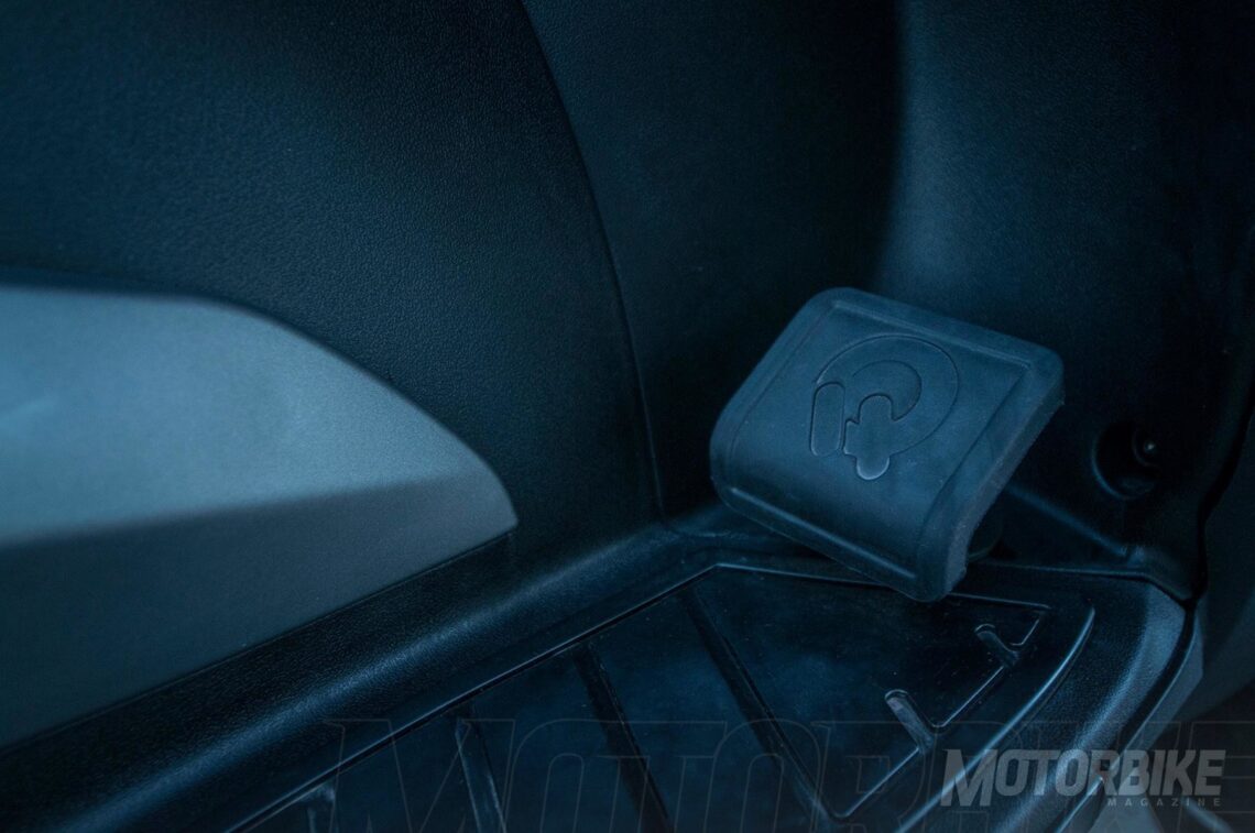 El hueco del que dispone el Quadro QV3 bajo el asiento nos permite guardar un casco integral de manera holgada, dejando hueco para un abrigo o una pequeña mochila. También dispone de una guantera de mano en el frontal, y otro pequeño compartimento donde disponemos de toma de corriente de 12 V, ideal para cargar teléfonos móviles o navegadores. Además el manillar, instrumentación y el carenaje superior son de nuevo diseño.