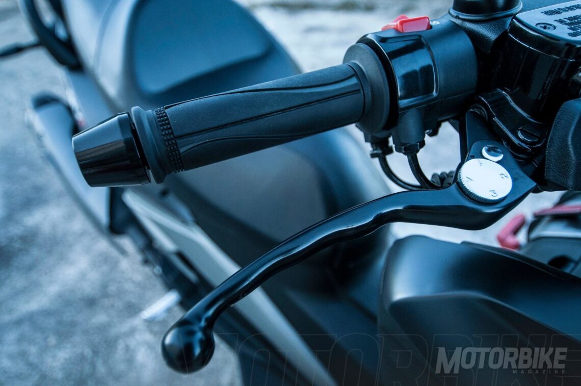 El Quadro QV3 ahora dispone de un sistema de fijación hidráulica mediante una leva bajo el manillar, que nos bloquea el sistema HTS, y de este modo podemos evitarnos el uso de un caballete (está destinado únicamente para estacionamientos y no debemos olvidar desconectar una vez iniciamos la marcha).