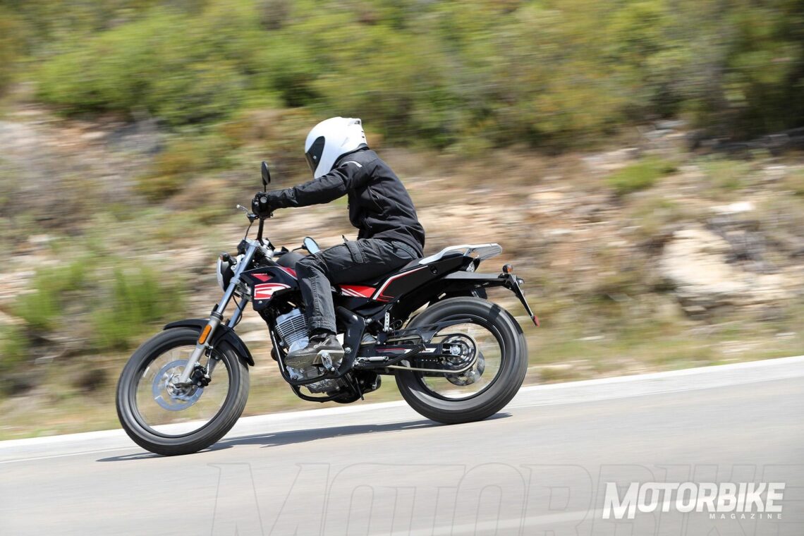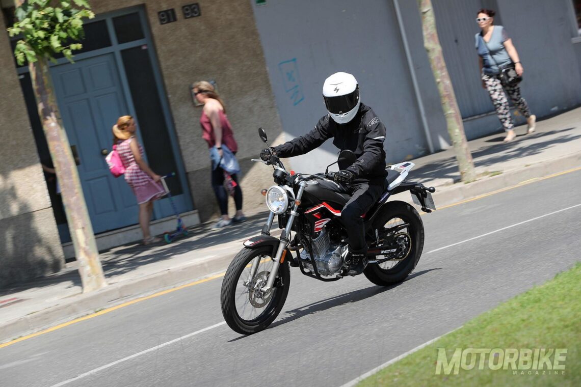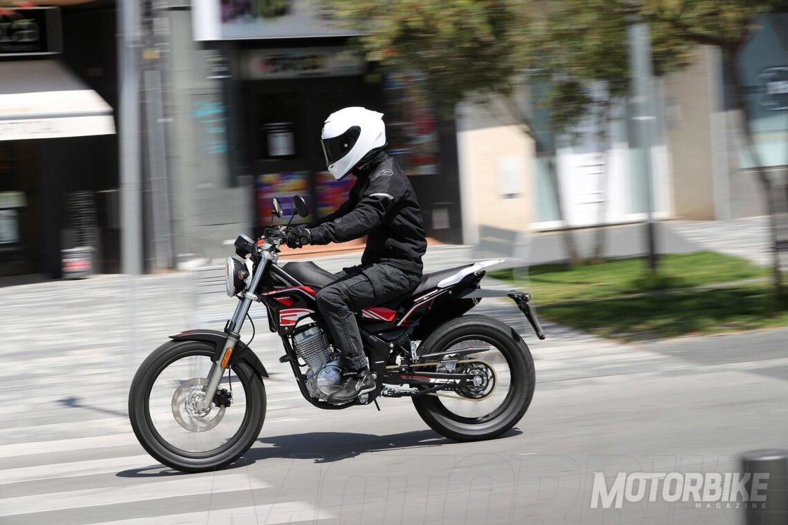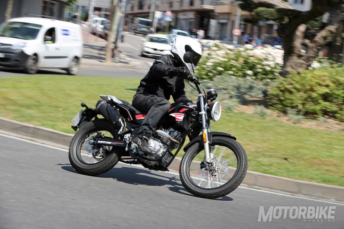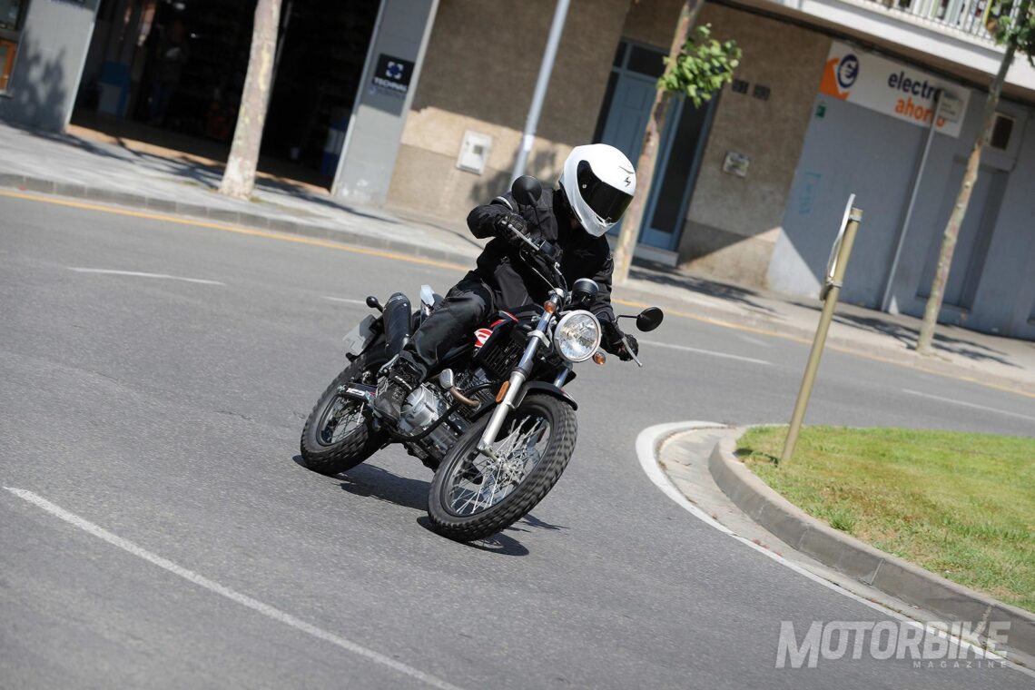 En circulación urbana nos sorprende el amplio radio de giro, potenciado por el ancho manillar, que nos dificultará hacer tope. Las estriberas en una posición relajada junto al manillar elevado logra una conducción fácil, sin esfuerzos. Otro detalle interesante es su baja altura al suelo (790 mm), alguien como yo de apenas 1'69 m de altura puede llegar con los dos pies al suelo. Fuera de ciudad, donde buscamos velocidades un poco mayores, es donde vemos la gran capacidad polivalente de esta moto, aunque por otro lado vemos un incremento en la sonoridad de los neumáticos (tacos rapados). El motor tiene fuerza de sobra, pero está más dirigido para ciudad o campo, o en todo caso carreteras de montaña; a partir de 100 km/h le cuesta, y tiene un corte a 115 km/h que rara vez alcanzaremos en llano.