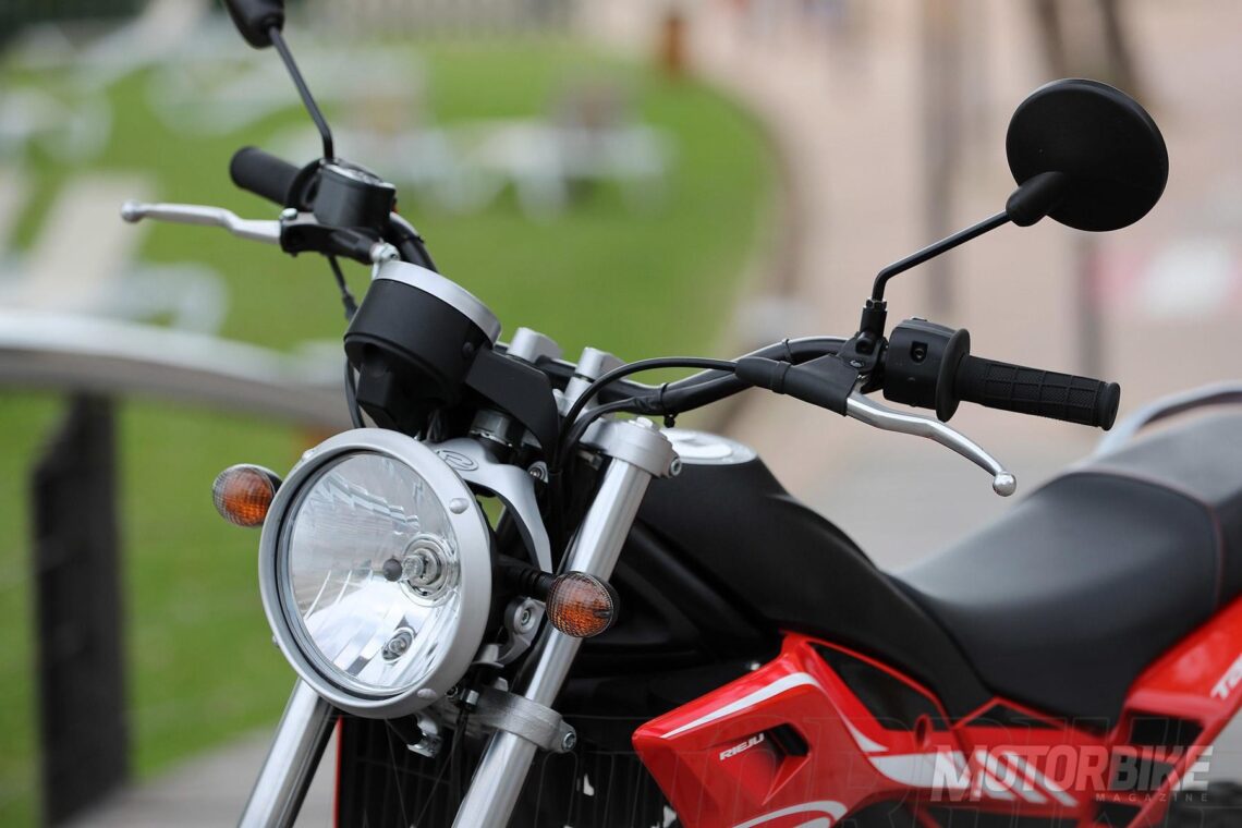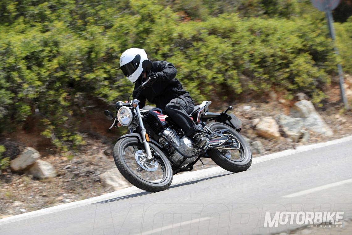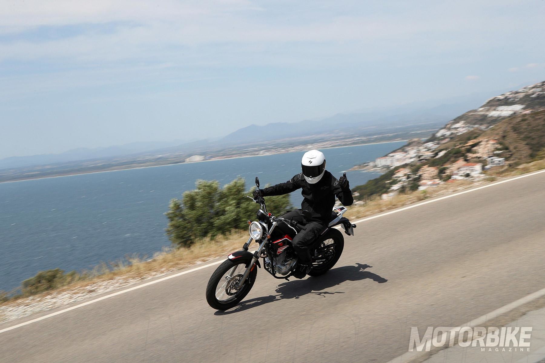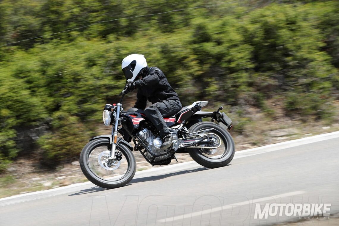 En circulación urbana nos sorprende el amplio radio de giro, potenciado por el ancho manillar, que nos dificultará hacer tope. Las estriberas en una posición relajada junto al manillar elevado logra una conducción fácil, sin esfuerzos. Otro detalle interesante es su baja altura al suelo (790 mm), alguien como yo de apenas 1'69 m de altura puede llegar con los dos pies al suelo. Fuera de ciudad, donde buscamos velocidades un poco mayores, es donde vemos la gran capacidad polivalente de esta moto, aunque por otro lado vemos un incremento en la sonoridad de los neumáticos (tacos rapados). El motor tiene fuerza de sobra, pero está más dirigido para ciudad o campo, o en todo caso carreteras de montaña; a partir de 100 km/h le cuesta, y tiene un corte a 115 km/h que rara vez alcanzaremos en llano.