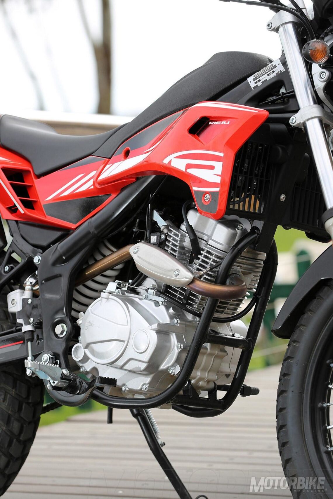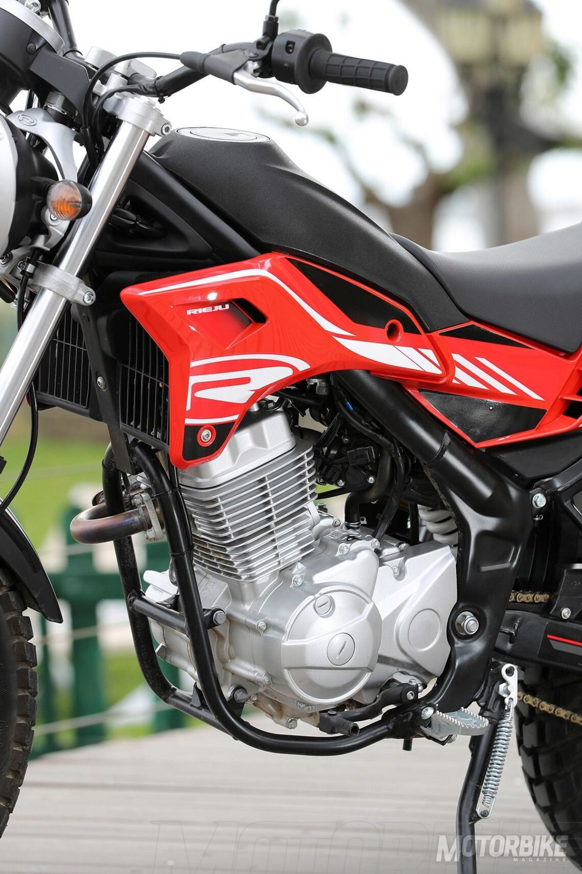 El motor es un monocilíndrico de 4 tiempos refrigerado por aire, pero ahora con eje de balance que aminora las vibraciones a bajo y medio régimen. Este se transmite a las ruedas gracias a una caja de cambios muy bien escalonada, con una relación relativamente corta, que facilita su conducción por carreteras reviradas o tramos de pista/offroad.