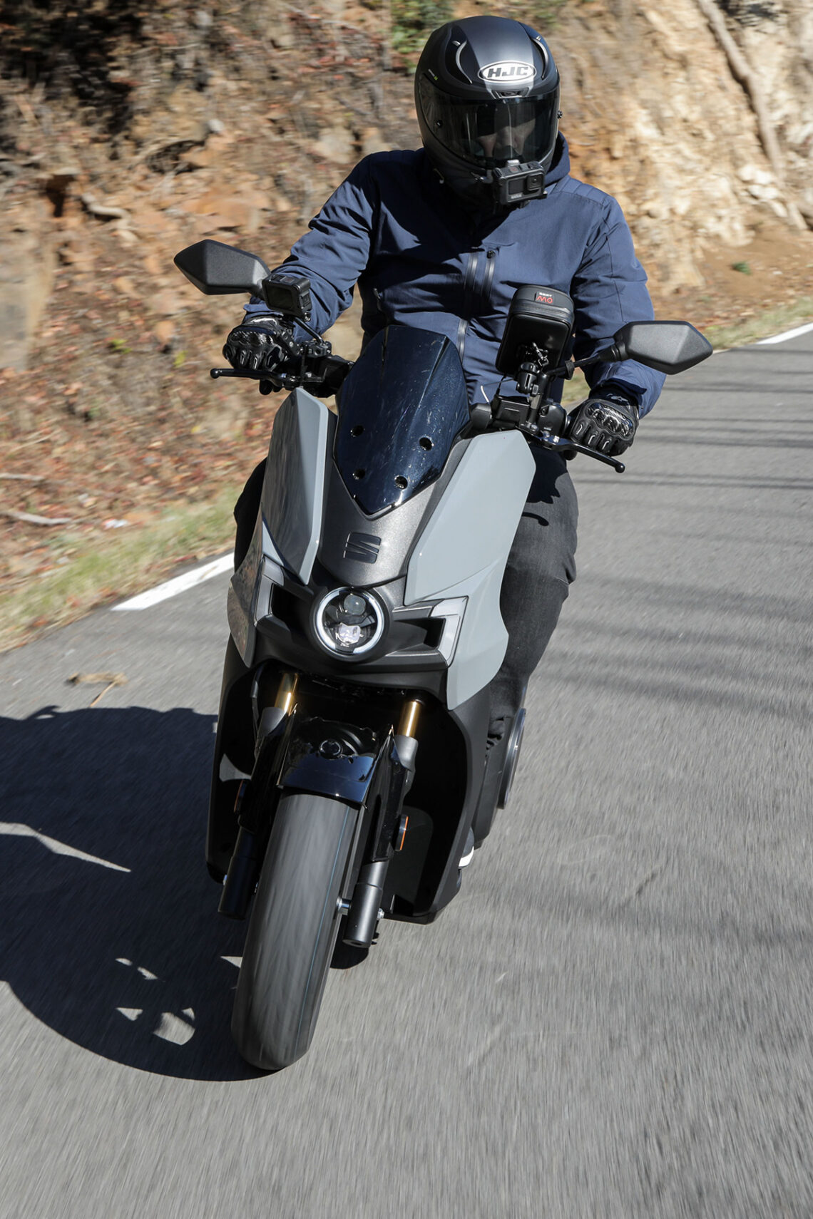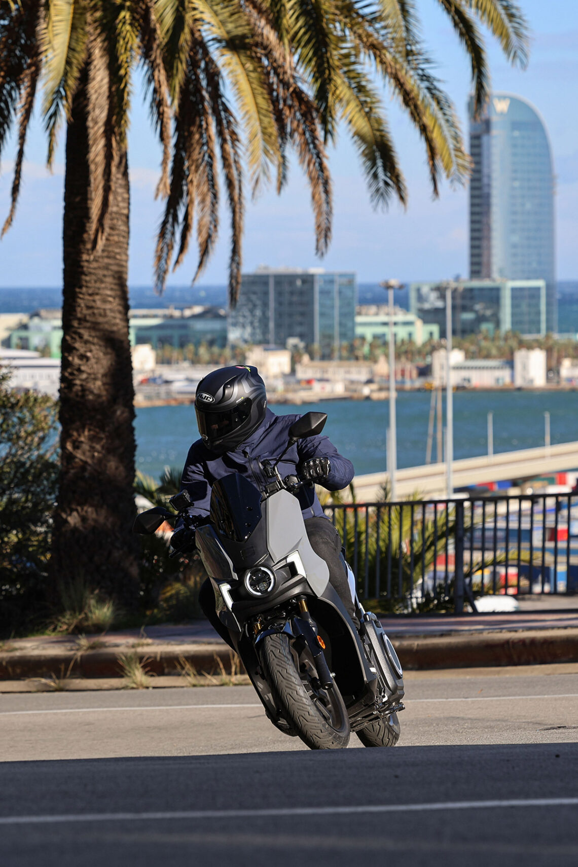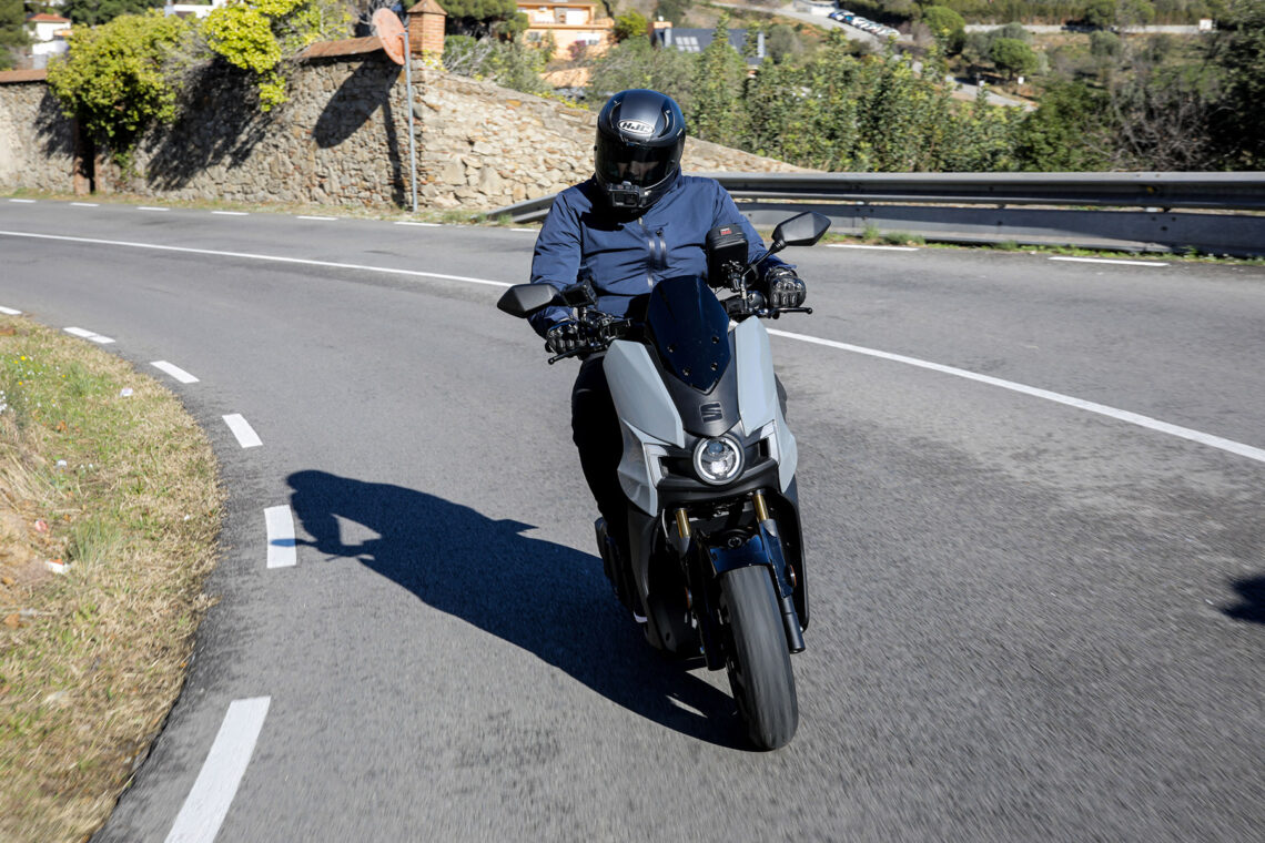 Sus 152 kg le hacen muy manejable y la parte ciclo le otorga agilidad para salir airoso del tráfico urbano como estabilidad suficiente para rodar a tope en tramos cortos por el carril derecho en vías de circunvalación. Lógicamente, los modos de conducción condicionan la autonomía, siendo el Sport el que más corre y acelera. Con él alcanzas una velocidad máxima de 95 km/h (80 km/h el City y 65 km/h el Eco). En vías rápidas, podemos activar el eBoost pulsando sobre el botón de la piña derecha, ganando así otros 10 km/h durante medio minuto. Cada uno de ellos regenera energía al cortar gas, y el dato real de lo que nos queda siempre aparece en pantalla.