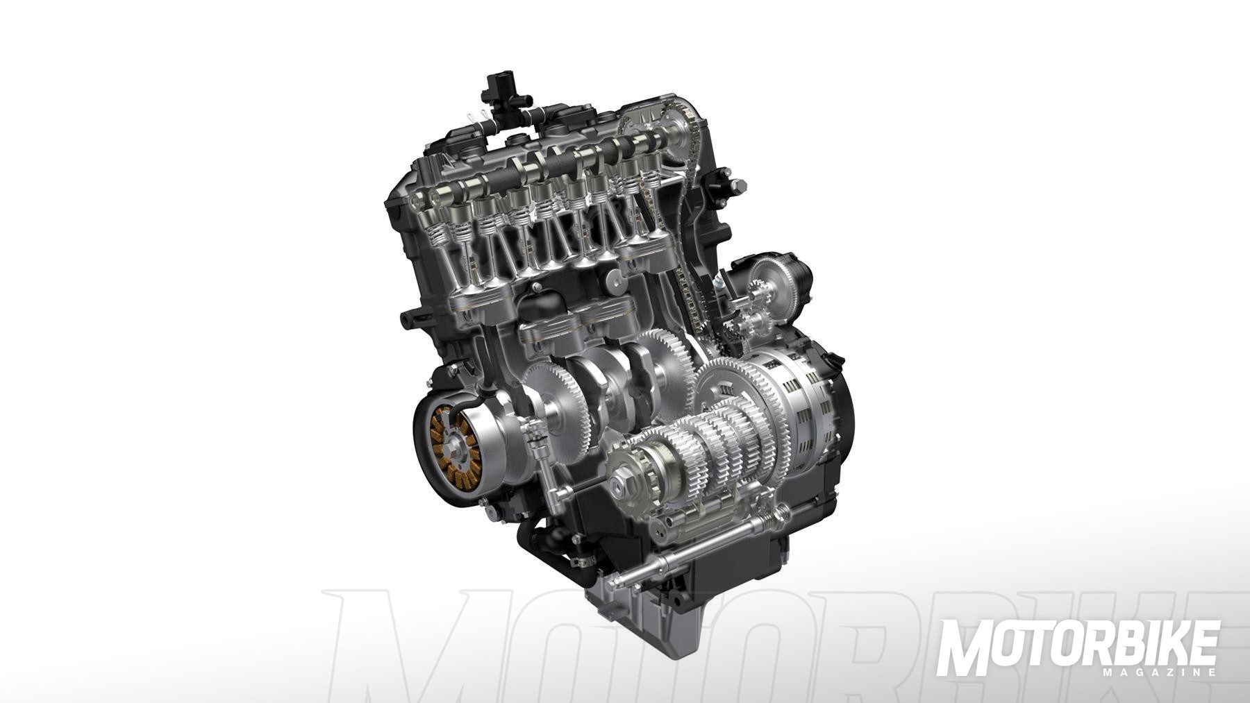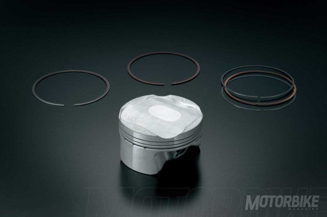 El motor de la Suzuki Katana 2019 ha sido una herencia directa de la GSX-R1000 2005/2008. Este propulsor es uno de los hitos de la marca, una de las referencias del sector, una mecánica contrastada, potente, y referente. Estamos ante un motor de carrera larga (73,4 x 59), que ofrece una de las mejores curvas de potencia de la historia en la zona baja y media para un tetracilíndrico de 1000 cc. Esta personalidad que desprende el motor de la GSX-R1000 2005/2008 es perfecto para la nueva Katana. Un motor deportivo, portentoso, con mucho par motor y por supuesto, potencia. Además la disposición del cigüeñal de este motor permite el uso de un chasis con una construcción más ligera. A pesar de todos estos interesantes datos, debemos decir que Suzuki ha aplicado alguno cambios, como unos nuevos pistones más ligeros, logrando una velocidad lineal del pistón más rápida. Ahora también incorpora bujías de iridio de serie, para aumentar la eficiencia de la combustión. Otro cambio es el enfriador de aceite, ahora por agua en vez de aire como en la GSX-R.