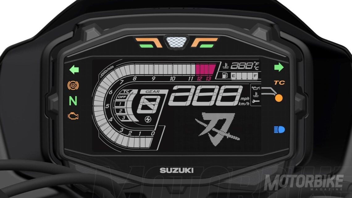 Por supuesto, cuenta con iluminación LED en todas sus ópticas (frontal, cruce y largas, posteriores e intermitencias) y un panel de instrumentación LCD específico y personalizado con la interfaz y la gráfica de la Katana.