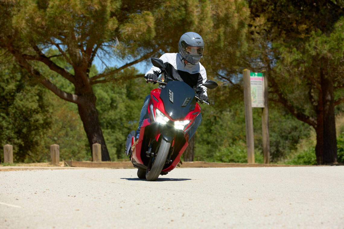 Arrancamos el motor y percibimos (porque casi no se oye) la suavidad del mismo, que contrasta con la respuesta del gas, enérgica e instantánea, que es lo que requiere la salida de un semáforo. Lo mismo pasa con el “culebrear” entre coches: es muy fácil serpentear a muy baja velocidad sin necesidad de poner los pies en el suelo, porque está muy bien equilibrado de pesos y obtiene del puño del gas lo que se espera de él, es muy fácil modular la transición suave/enérgico. No sorprende con salidas de tono (ni por exceso ni por defecto), lo que es una gran virtud en un vehículo que ha de facilitarte la vida.