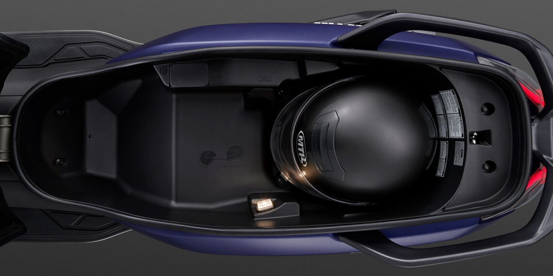 Ahora presenta una doble guanterita delantera (una de ellas con toma de carga por puerto USB), una pantalla frontal ajustable en dos posiciones y, un nuevo hueco bajo el asiento más grande siendo la carrocería exterior más pequeña. El hueco bajo el asiento permite dos cascos integrales o un jamón de jabugo, tal y como nos aseguran desde Motos Bordoy. No tiene pinta de ser broma.