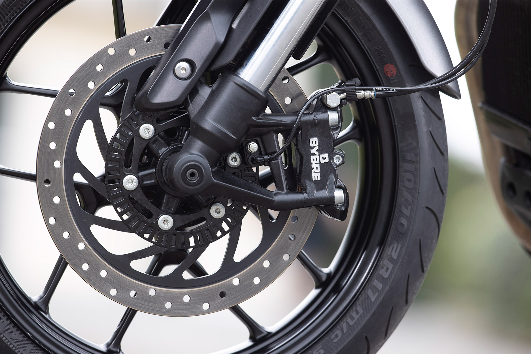 Al igual que sucede en la Speed Twin 1200, la llanta delantera de 17 pulgadas obra el milagro, transformando a esta "inocente" neoclásica en una auténtica naked que nada tiene que envidiar a motos de enfoque street-fighter. Los Metzeler Sportec agarran de lujo, algo de agradecer cuando muchas motos asiáticas suelen montar gomas de segundo orden para abaratar, además de ser estrechos (110 delante y 150 detrás) para potenciar la manejabilidad. La frenada de la pinza delantera radial ByBre (filial de Brembo) con latiguillo metálico es muy potente y el ABS no se hizo notar en ningún momento. Por su parte, la potencia del freno trasero de 230 mm me resulta algo escasa, debiendo pisar el pedal con decisión, algo a lo que no estoy demasiado acostumbrado con motos más grandes.