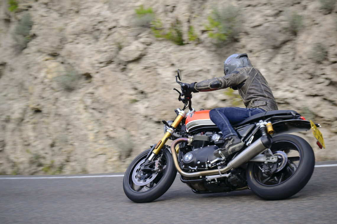 Este punto es otro donde también se desmarca un poquito la Speed Twin 1200 RS, aunque no tanto como sucede cuando hablamos de suspensiones o frenos. El nuevo modo de conducción no solo esconde una respuesta más directa o deportiva, sino una gestión de las ayudas de conducción más permisiva. Esto es, un control de tracción más deportivo, así como un ABS menos intrusivo. Esto va sumando extras a esa experiencia global de conducción que solo puedes encontrar en la versión RS.
