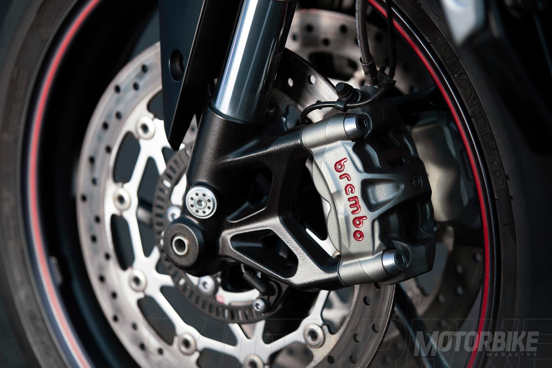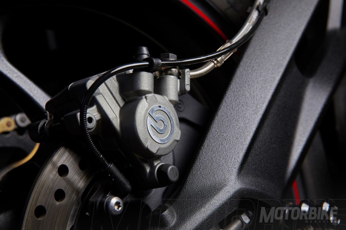 Al margen de la interacción electrónica, la frenada de los Brembo (binomio bomba MCS y pinzas M50) es imperecedera, da igual la temperatura que haya en pista, no hay fatiga, mostrando siempre una tenacidad y un tacto muy directo. En ningún momento noté que la leva de freno se hundiera más de lo normal o que la mordida de frenado fuera a menos.