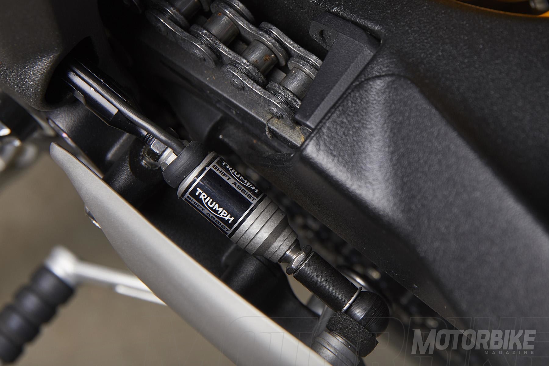 El cambio semi-automático es uno de esos elementos que toman mucho protagonismo en la personalidad de una moto. Un cambio mediocre puede hacer de una gran moto un auténtico desastre. No es el caso en la Triumph. Estamos ante uno de los mejores cambios semi-automáticos del mercado, preciso, corto, milimétrico, directo y rápido, muy rápido. Si bien es cierto que no se siente tan blandito como en otros modelos Triumph, a servidor le gusta más así. El tacto es algo más firme y sólido, te confirma la marcha engranada y transmite sensación de solidez, pero muy lejos de resultar un cambio duro o impreciso. Lo mejor del cambio semiautomático es que, a diferencia de la mayoría de sistemas similares que funcionan mejor en altas rpm, el quickshifter de Triumph mantiene la misma operatividad tanto a bajo régimen, como a medio régimen, como en alto régimen gas a fondo. Esto le hace un cambio muy eficaz en conducción deportiva, y un cambio muy cómodo en conducción urbana, donde solemos acabar fatigados de embragar.