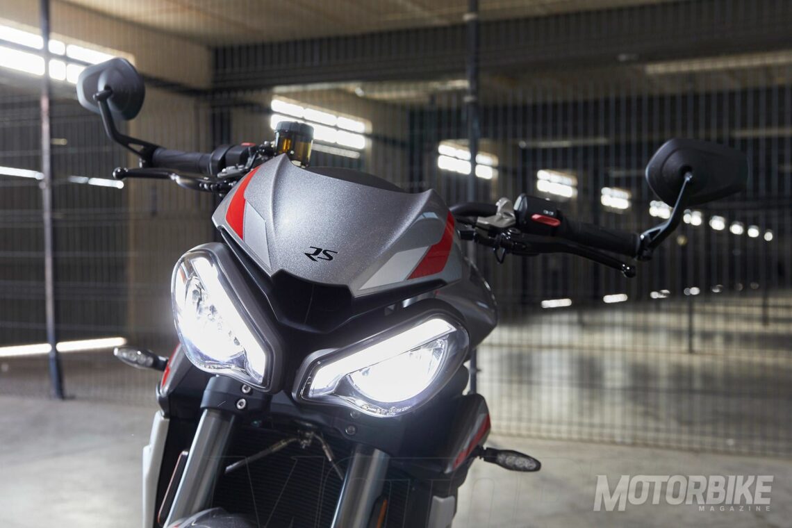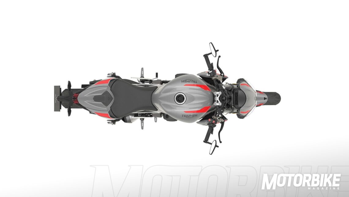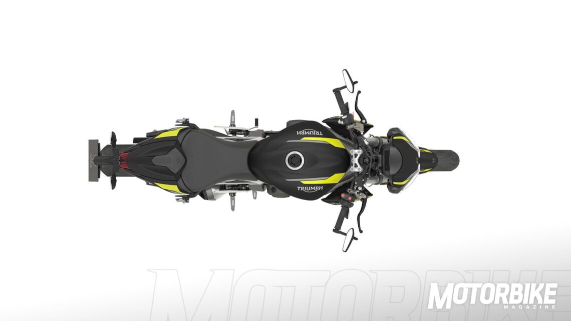 Con todo ello Triumph ha logrado la naked de media cilindrada más ligera del mercado con un peso final de 166 kg en vacío. La cifra de peso se une a los 123 cv de potencia, los 79 nm de par motor, un depósito de gasolina de 17,4 L y una altura libre del asiento al suelo de 825 mm.