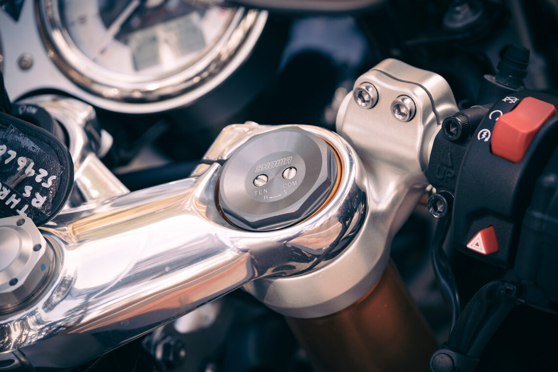 Lo más destacable son sus frenos; pinzas Brembo monobloque M50 de 4 pistones y anclaje radial, los amortiguadores Öhlins y el tren delantero Showa BPF, completamente regulable tanto en hidráulico como precarga. También encontramos unos neumáticos mucho más prestacionales, los pegajosos Metzeler Racetec RR, una batería más liviana y una actualización en su paquete electrónico con tres modos de conducción.