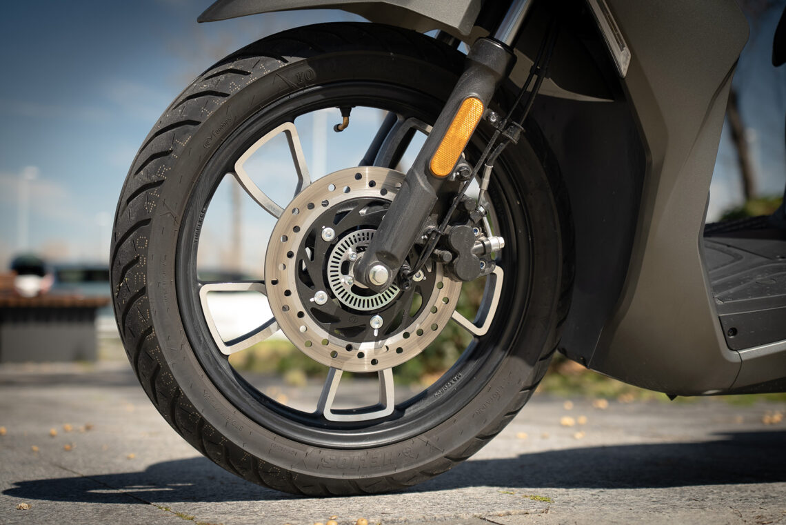 Realmente lo relativo a baches, agujeros y diferentes irregularidades del asfalto tiene más que ver con las suspensiones. Estas son de tacto y respuesta rápida. No son duras, tampoco blandas, se notan bastante precargaditas (es decir, sin apenas recorrido muerto), los baches los absorbe batsante bien (podría hacerlo mejor, sobre todo de delante) pero cumple con satisfacción para un uso de diario por ciudad. Eso sí, son un poco "rebotonas" si empezamos a acumular baches y rizos sin darle "descanso" con una zona lisa.