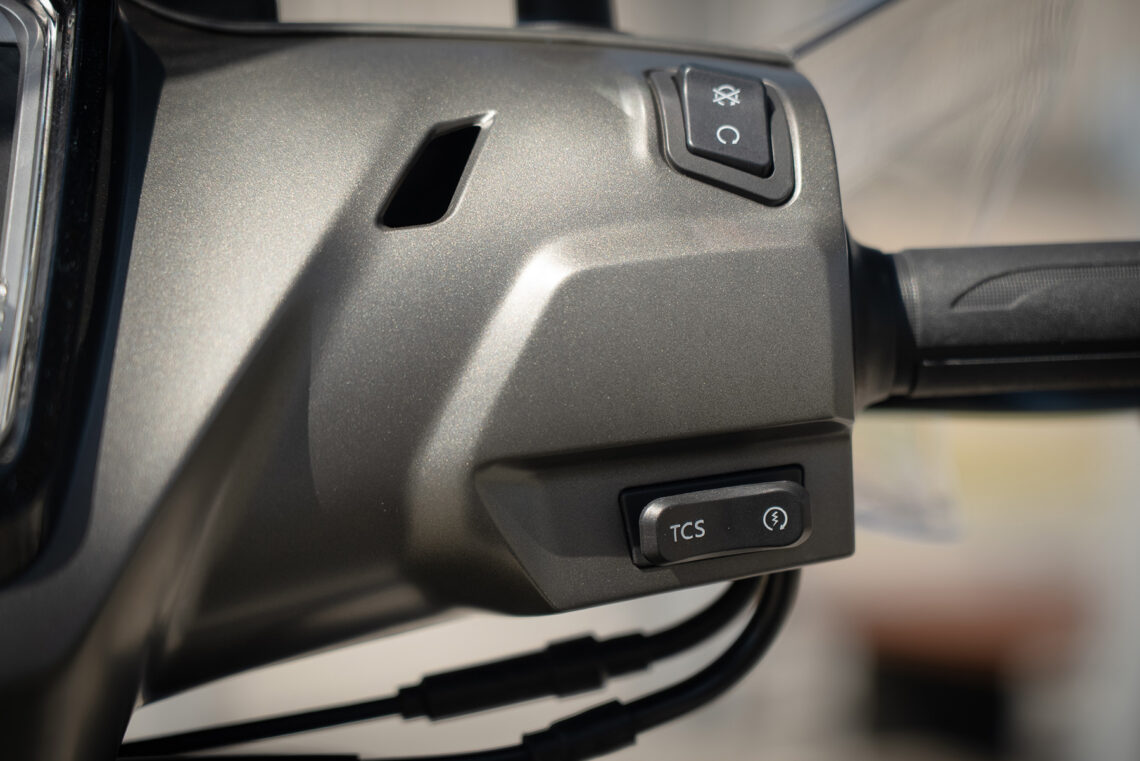 La parte tecnológica es la que mas destaca, con control de tracción TCS, sistema de ayuda a la frenada ABS de doble canal (freno delantero y trasero), sistema de alerta de frenada de emergencia ESS, llave de proximidad keyless, iluminación full LED, toma de carga por puerto USB, instrumentación LCD con navegación "Turn by Turn", y como guinda del pastel, cuenta con una cámara frontal HD. La cúpula frontal elevada y los paramanos vienen de serie.