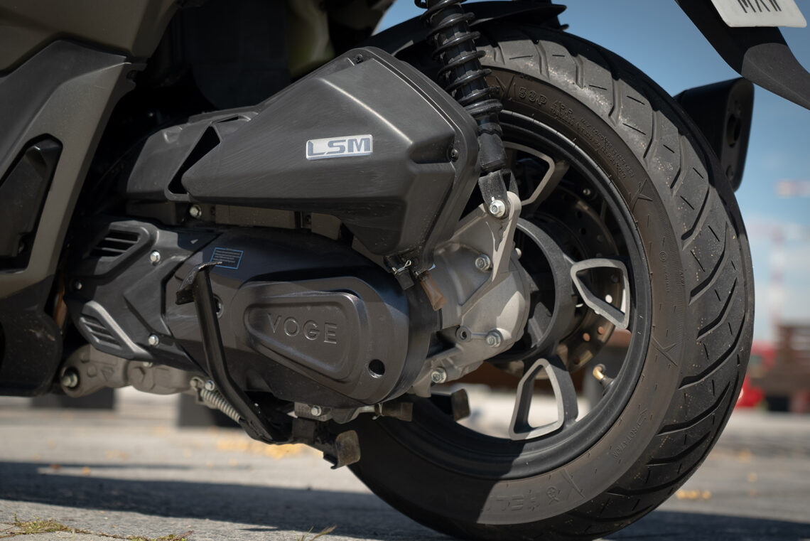 En el caso concreto del Voge SR16 encontramos una rueda delantera de 16" emparejada con una trasera de 14". La parte ciclo es la misma que la de su hermano el Voge SR1, y el motor, de 125 cc, ofrece una potencia de 11,5 cv con un consumo rondando los 2'6 L/100km.