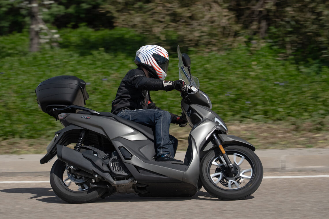 En definitiva, se siente muy ágil, tiene prestaciones suficientes, frena bien, las suspensiones podrían mejorar un poco, y su capacidad de carga es más que suficiente, pudiendo albergar un casco integral tanto bajo el asiento como en el top case.