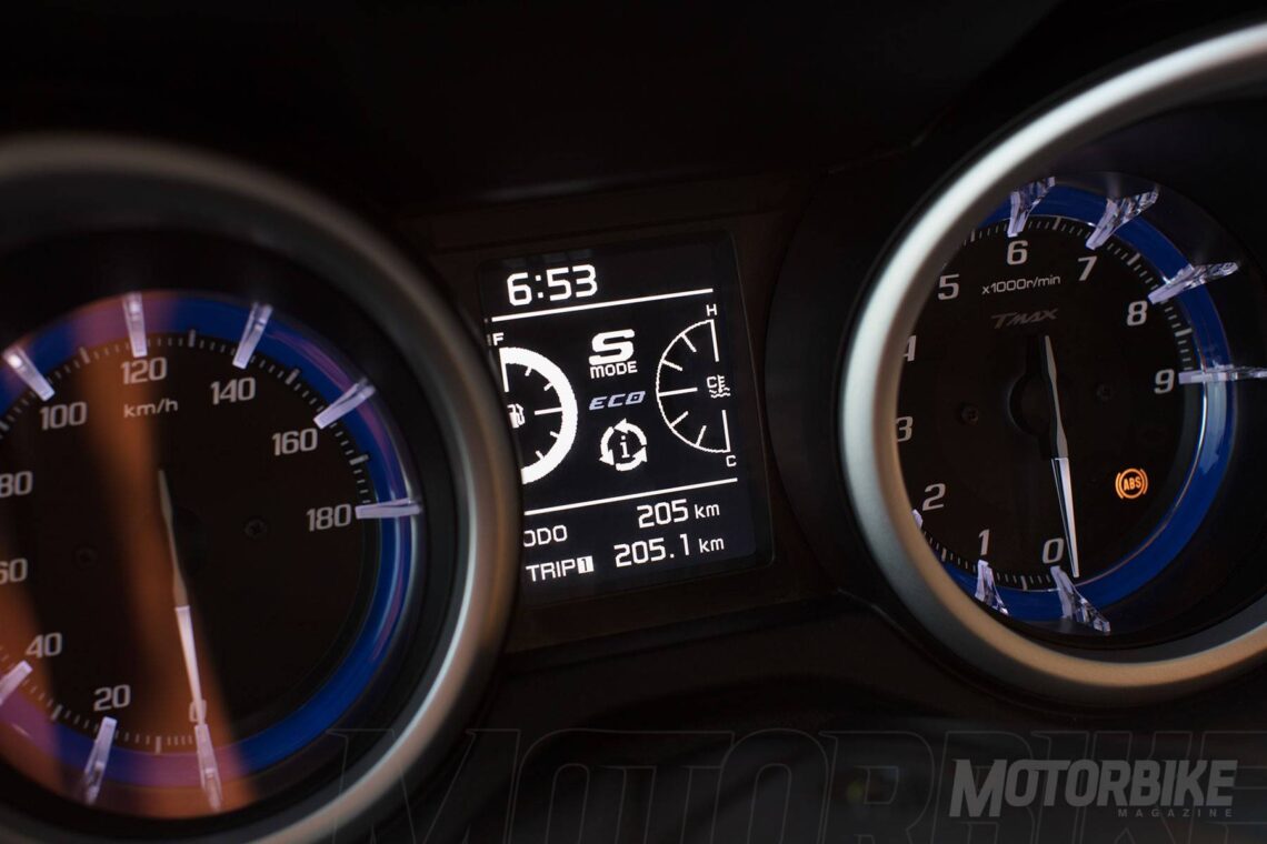 La calidad de los acabados es muy destacable, sobre todo en las versiones TMAX SX y DX, que fueron las que pudimos probar en la presentación en Sudáfrica. Éstas cuentan con un botón en la piña derecha "Mode" con el que conmutar el modo de motor T (Town) con cerca de 39 cv y una entrega muy suave y el modo S (Sport) con la entrega más directa de los 45 cv al completo. Los puedes cambiar en marcha dejando de dar gas. En el TMAX estándar y SX el ajuste de la pantalla requiere de herramientas mientras que en el DX el sistema eléctrico es comodísimo. El manillar no es excesivamente ancho, lo que ayuda a tener sensaciones deportivas.