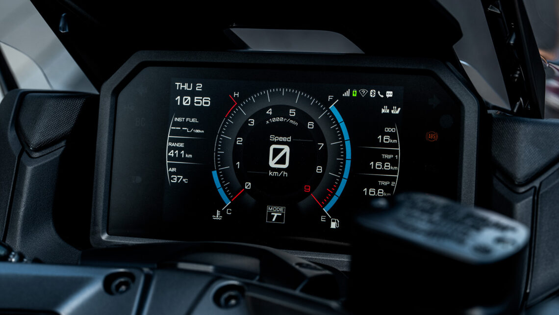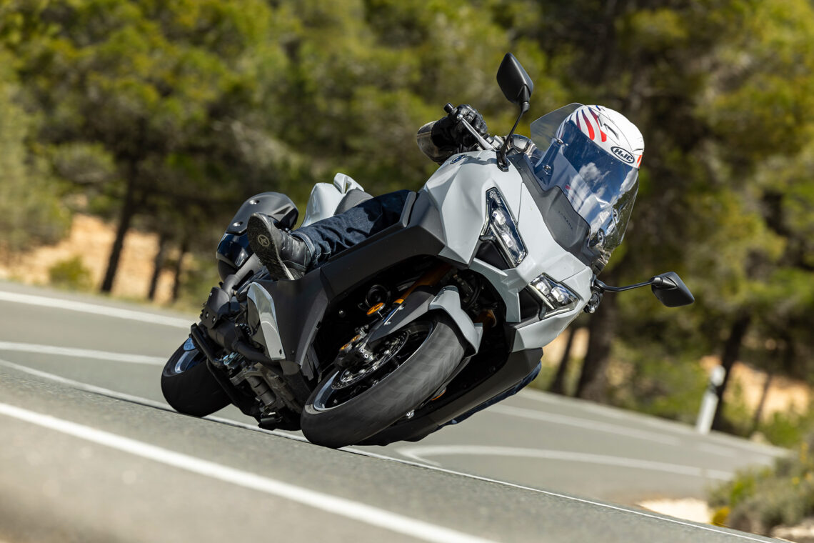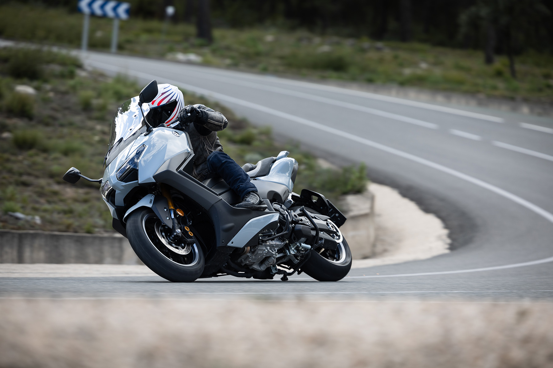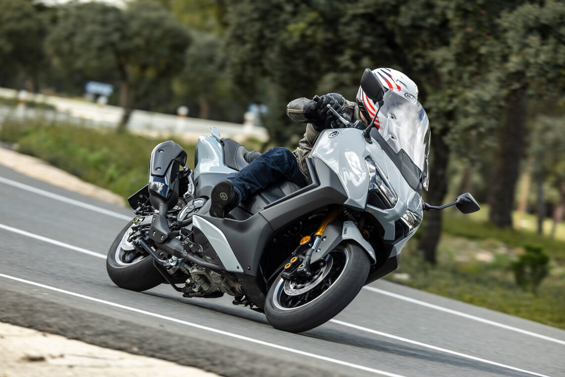 Donde sí encontramos mayor novedad es en la parte electrónica, con la incorporación por primera vez en un scooter/maxiscooter de una plataforma de medición inercial IMU. Esto nos confiere un funcionamiento mucho más rápido, preciso y seguro de todas las ayudas, además de incorporar la asistencia en frenado BC de Yamaha, o dicho de otro modo, el ABS en curva. A ello se suma un control de tracción y los ya conocidos modos de conducción T y S. No olvidar la nueva instrumentación TFT de 7" mejorada, con conectividad smartphone a través de su app gratuita MyRide así como el sistema de navegación Garmin también gratuito.