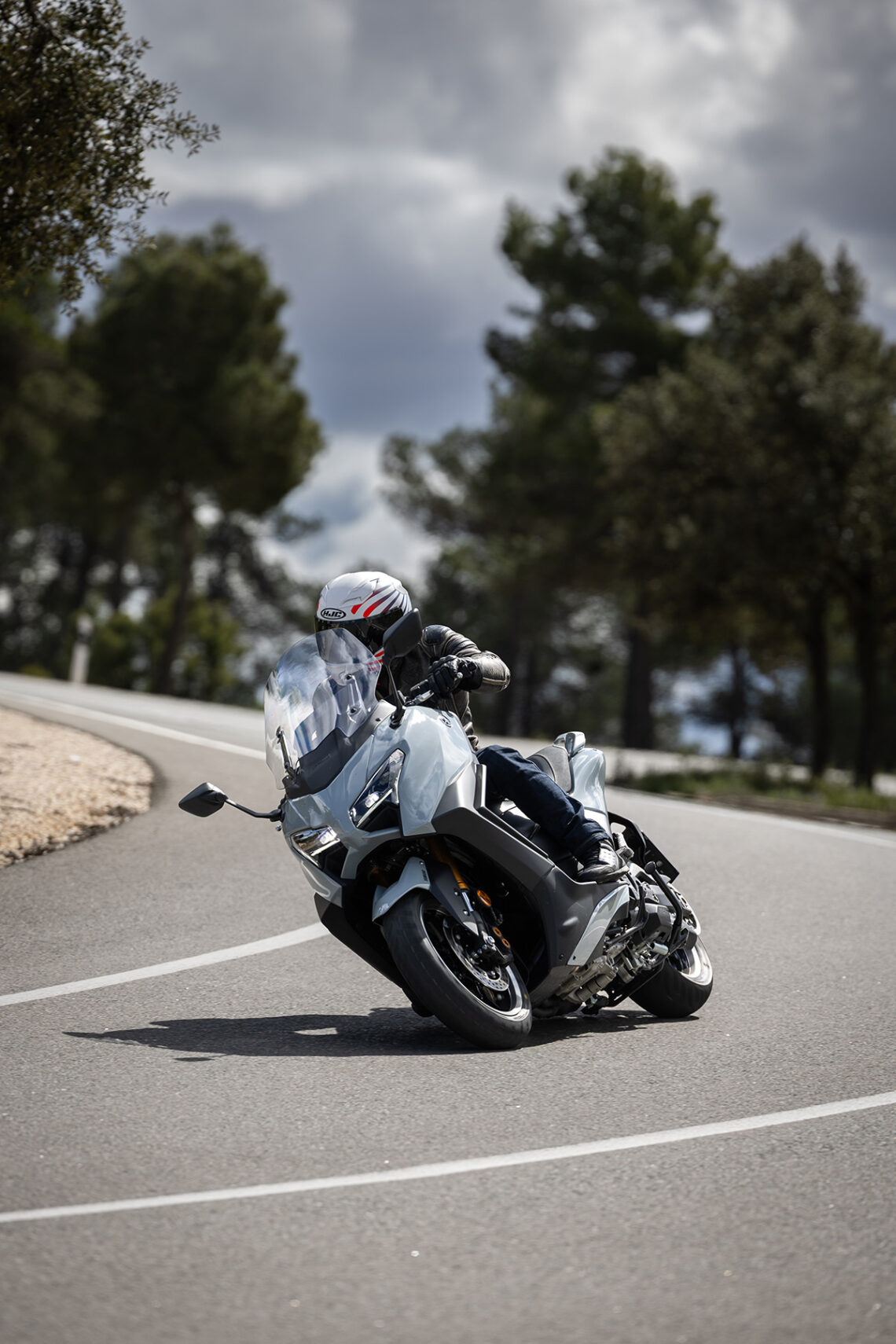 En sus entresijos seguimos encontrando el mismo motor bicilíndrico de 562 cc con 47 cv de potencia y 55 nm de par motor. Todo ello se gestiona a través de un variador y una correa dentada. Sí hay que destacar un cambio en la dureza de los muelles de los rodillos del embrague, para mejorar la respuesta y por ende la aceleración, por lo menos sobre el papel.