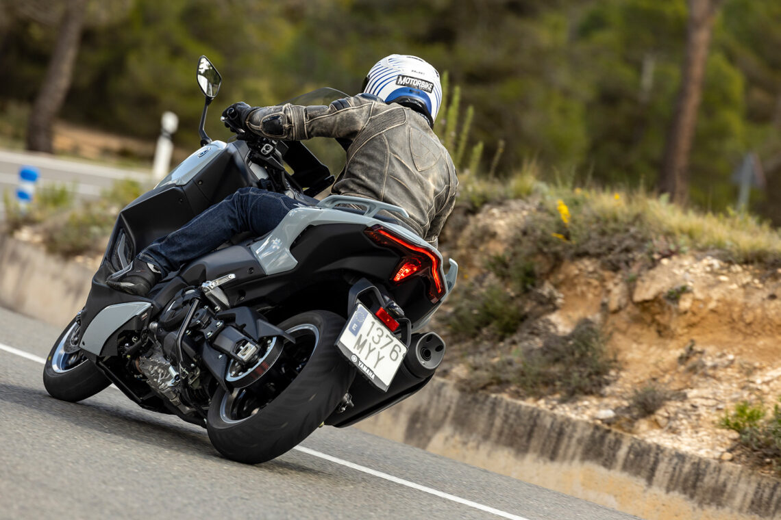 Me ha gustado especialmente la estabilidad que ofrece —de nuevo, igualmente que en el modelo anterior— ante las frenadas fuertes, deceleraciones o cambios de ritmo. Al final no deja de ser un vehículo de dos ruedas con bastante distancia entre ejes.
