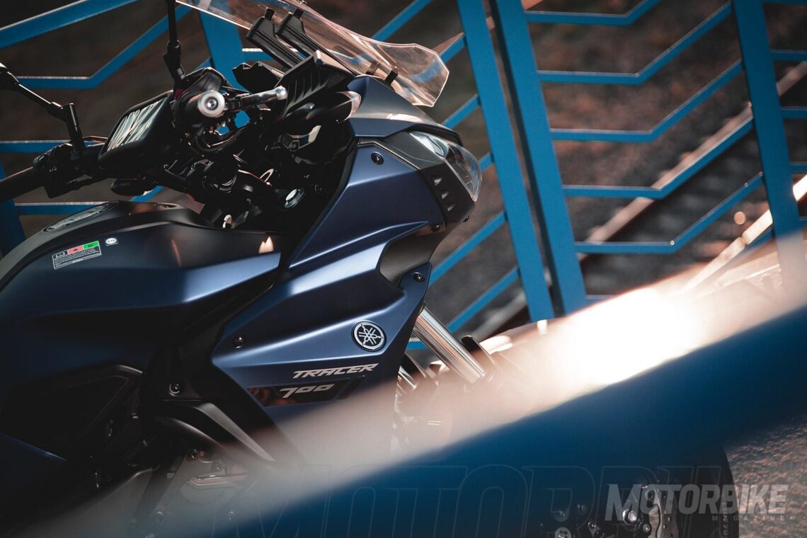 Para acentuar aún más sus cualidades ruteras, la Yamaha Tracer 700 incorpora un semicarenado que protege del viento, unos prácticos paramanos que ocultan los intermitentes y protegen los dedos del frío, o el depósito de 17 litros de capacidad y que permite una mayor autonomía entre los repostajes. La frenada se confía a un doble disco delantero de 282 mm y un único trasero de 245 mm, que cuenta con ABS de serie no desconectable. Además, se declara un peso en lleno de tan sólo 196 kg, muy contenido para una moto de estas características.