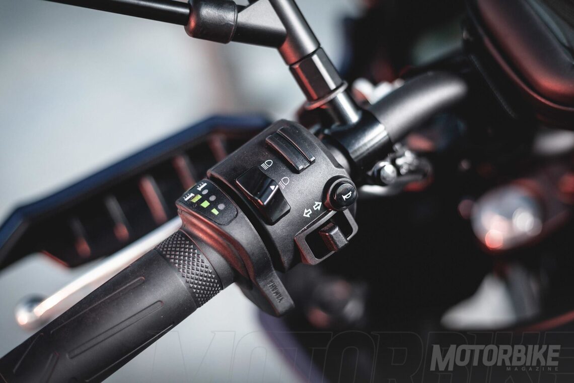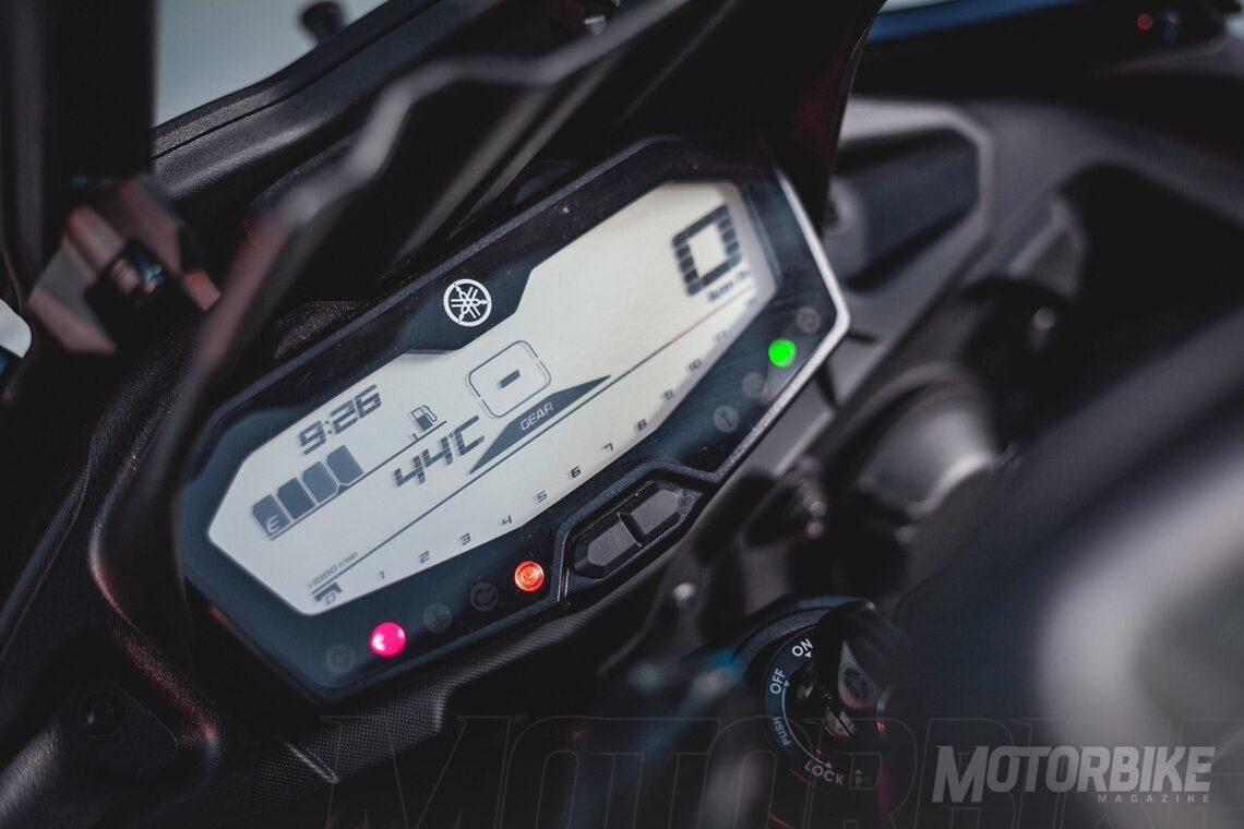 El cuadro de instrumentos tiene una pantalla LCD en la que se muestra un tacómetro digital, además del velocímetro y el indicador de marcha engranada, la hora actual y el indicador de combustible. Además, puedes elegir entre mostrar el totalizador de kilómetros, dos parciales, consumo instantáneo, consumo medio, temperatura del motor o temperatura exterior, mientras que las piñas de instrumentos son sencillas y muy fáciles de accionar.