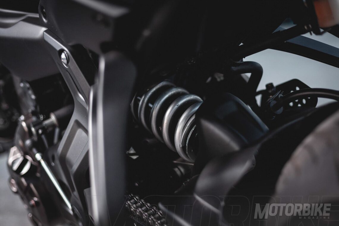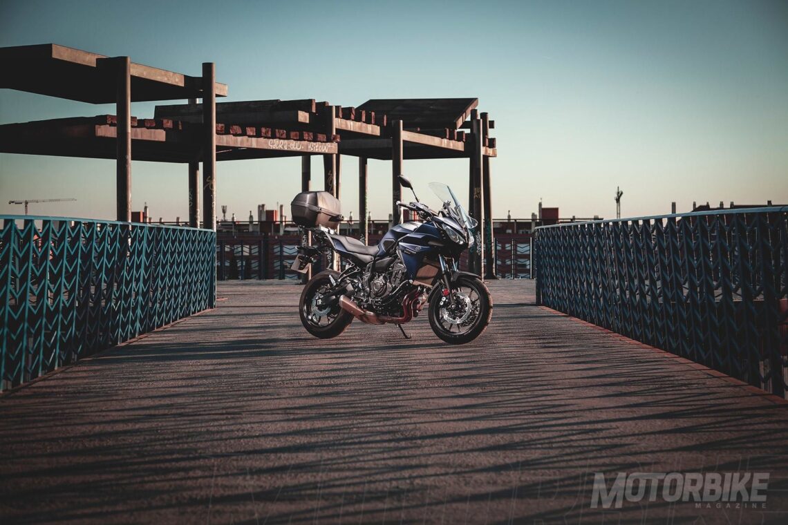 Al igual que el motor, el chasis también proviene de la MT-07, aunque sí se ha modificado el subchasis, con una longitud de 50 mm más, y el basculante, que alarga la distancia entre ejes hasta los 1450 mm, buscando un mejor comportamiento ‘sport-touring’. Es por ello que el tarado de las suspensiones también ha sido adaptado a estas características, con una horquilla telescópica de 130 mm de recorrido, pero con un ángulo de lanzamiento de 25 grados y un monoamortiguador trasero de 142 mm. El asiento doble de generoso mullido, las estriberas o los asideros del pasajero (que en nuestra unidad habían sido modificados para la instalación del baúl trasero), buscan que la moto se comporte perfectamente en cualquier situación, tanto en solitario, como a dúo.