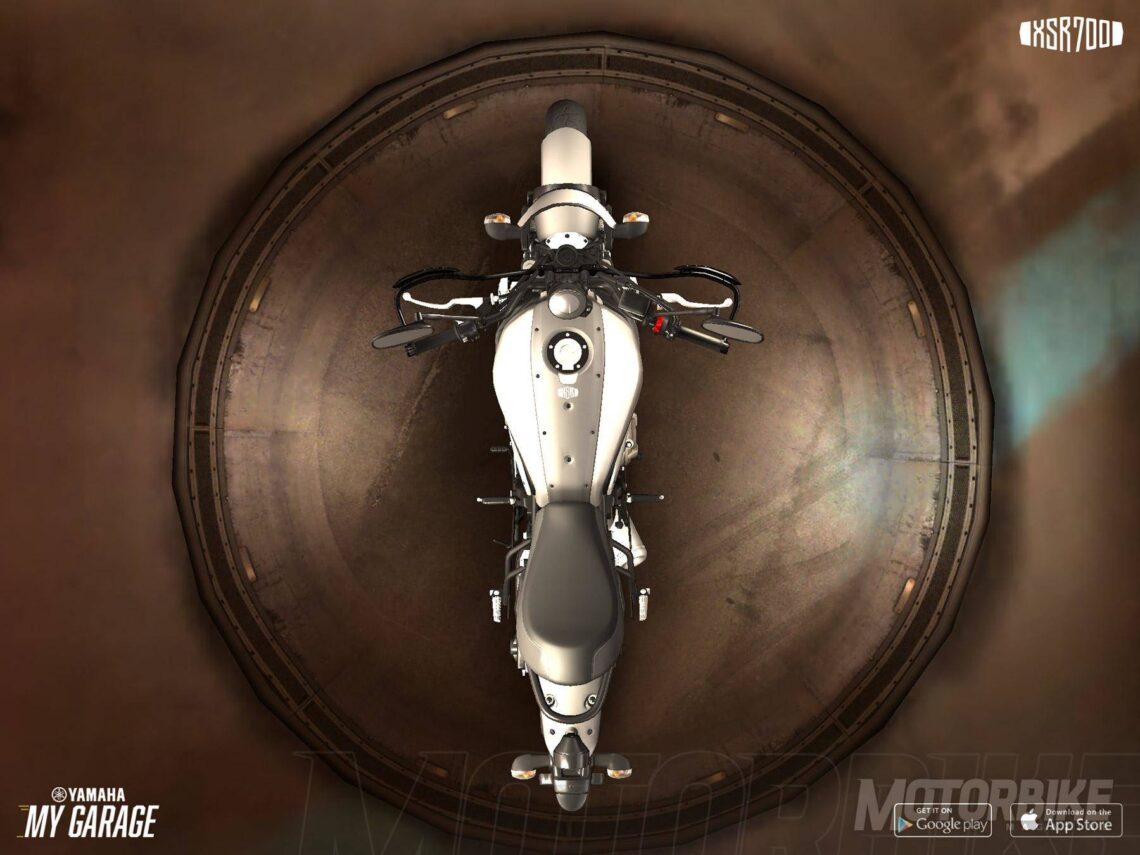 Para que te hagas una idea de cómo quedaría “mi XSR”, le he dado forma con la App My Garage a la moto que me he imaginado que cuenta con casi todo lo que yo le montaría, salvo la horquilla, el amortiguador y las pinzas radiales, tres accesorios que formarían parte del toque personal con la que convertirla en única e irrepetible.