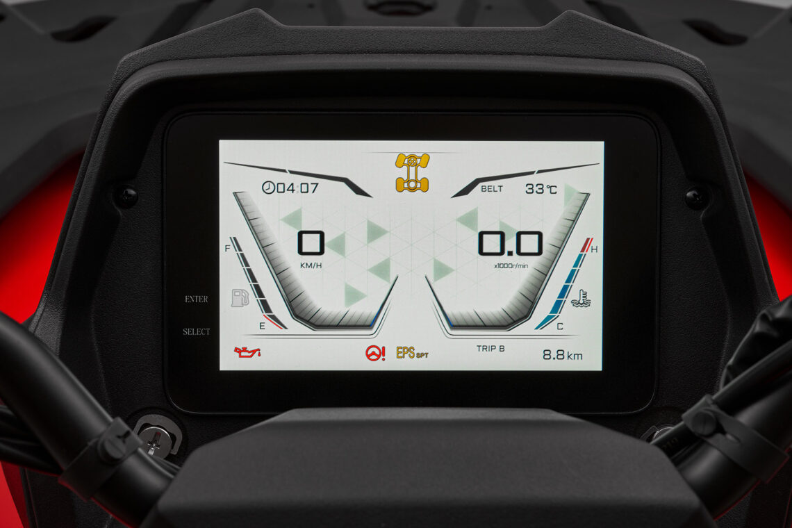 En cuanto a soluciones tecnológicas, hay que destacar de los ATV de QJMotor la dirección asistida electrónica EPS con tres niveles de dureza (Standard, Confort y Sport) para adaptarse a diferentes terrenos o gustos. La instrumentación varía según el modelo: en el SFA 600 Standard vemos una pantalla LCD de 5" mientras que en el SFA 600 High y el SFA 1000 lucen una pantalla TFT de 7" con conectividad Bluetooth y posibilidad de mirroring para el smartphone