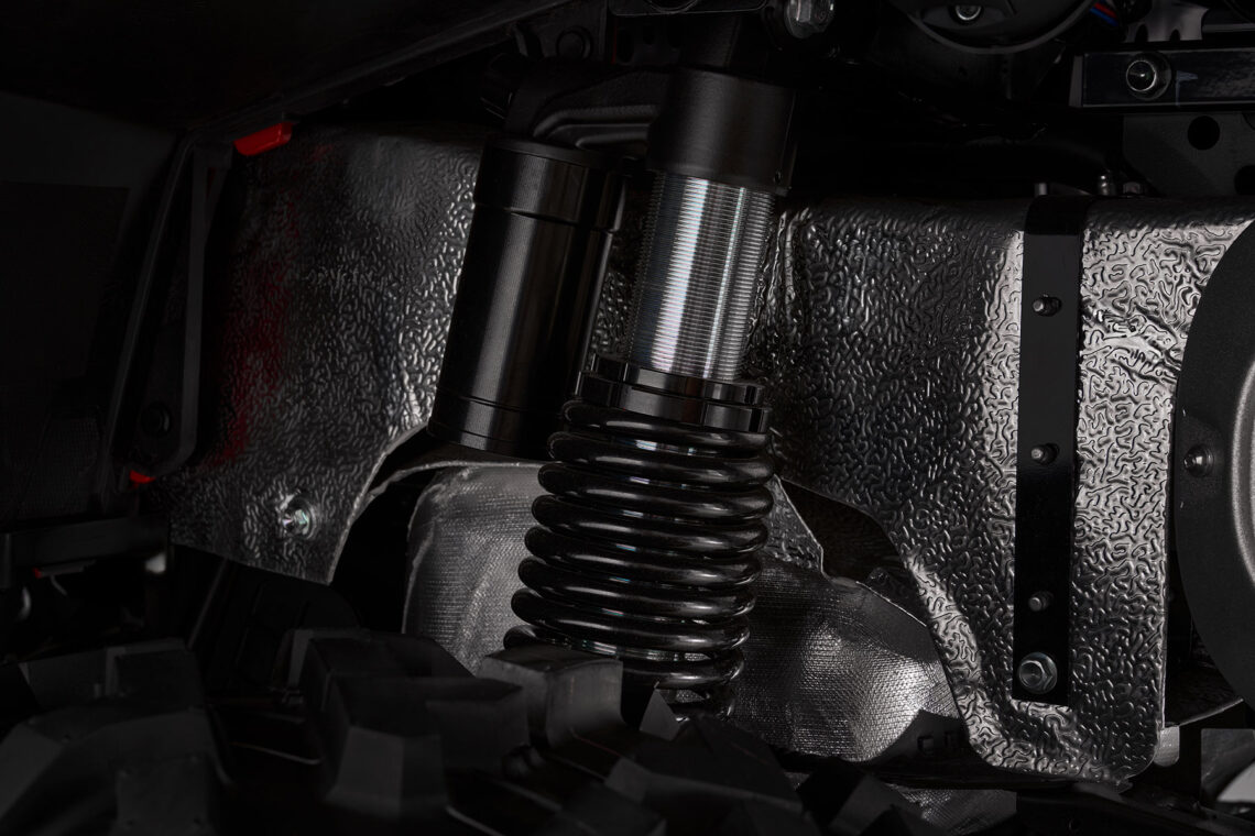 Los tres modelos que componen esta gama de ATV cuentan con sistemas independientes de doble brazo oscilante en ambos ejes. En el SFA 600 Standard viene con amortiguadores hidráulicos regulables en precarga mientras que los SFA 600 High y SFA 1000 elevan el nivel instalando amortiguadores de gas tipo piggyback con ajuste en precarga y compresión.
