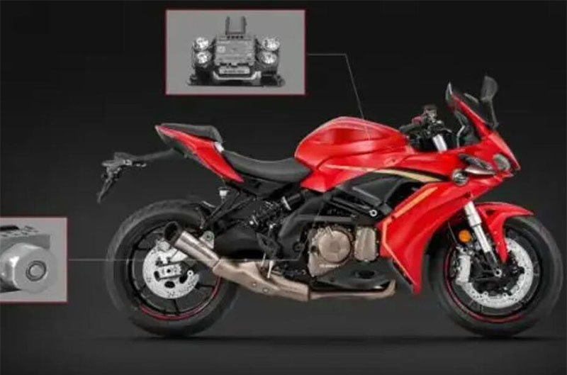 Además contará con un tren delantero invertido KYB, seguramente regulable, doble disco delantero Brembo y neumáticos 120/70-17 delante y 180/55-17 detrás. A ello se suma un pequeño trabajo aerodinámico con apéndices laterales (alerones) de los cuales desconocemos su "downforce", instrumentación digital TFT, iluminación full LED y llave de proximidad keyless.
